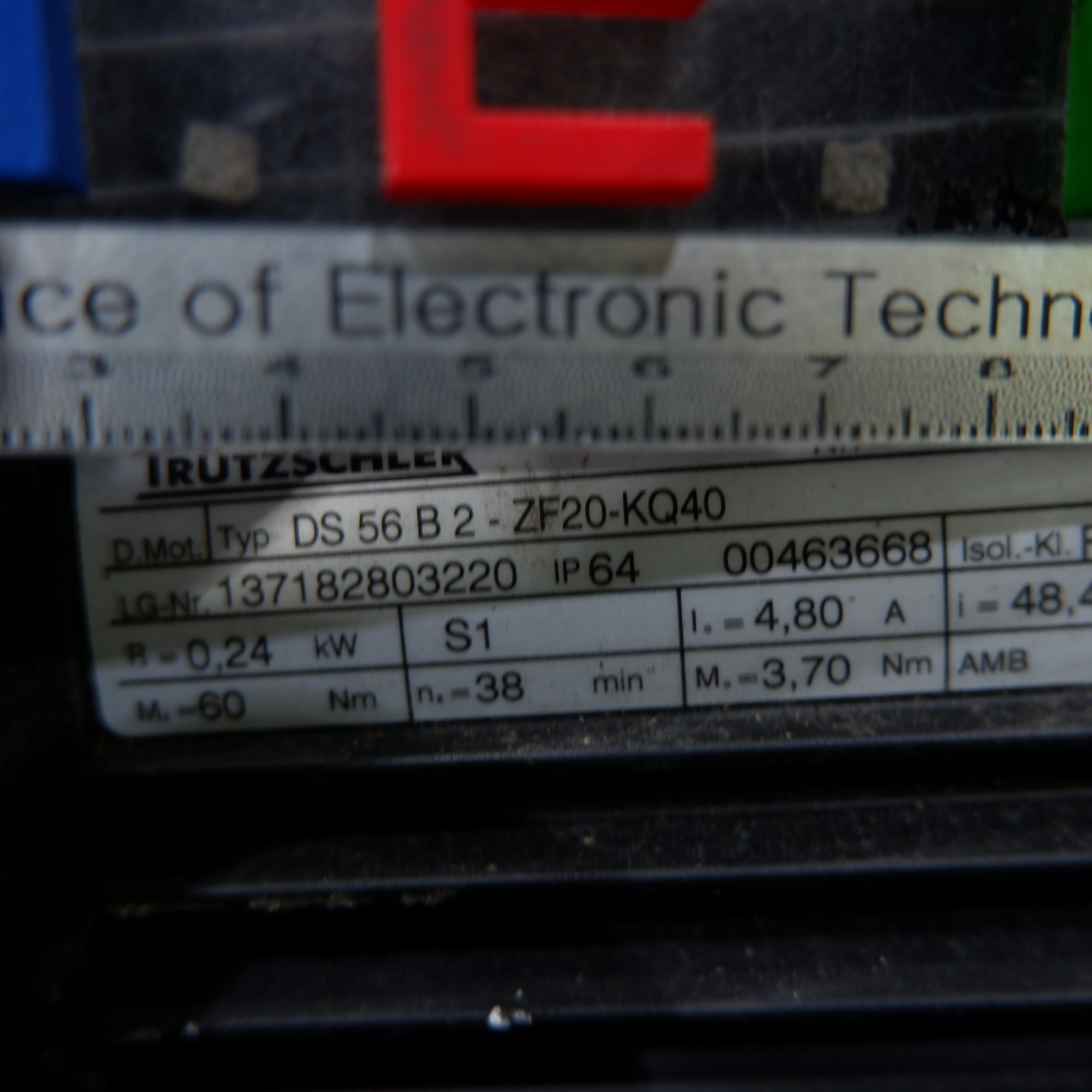 MANUFACTURER : TRUTZSCHLER MODEL : SERVO MOTOR DS 56 B2-ZF20-KQ40
