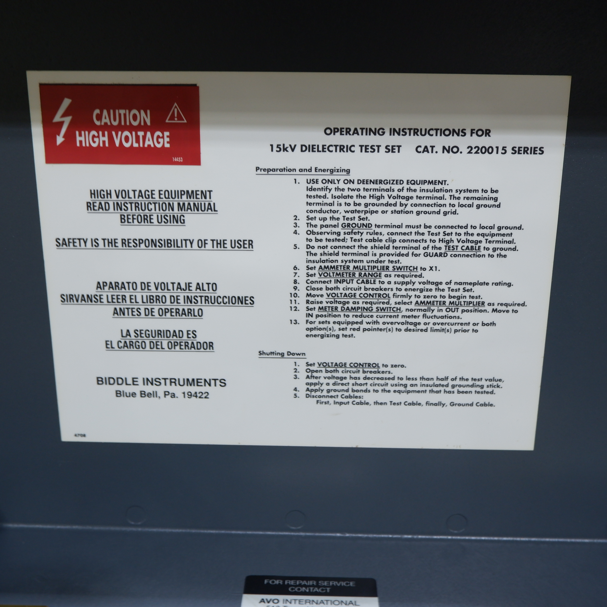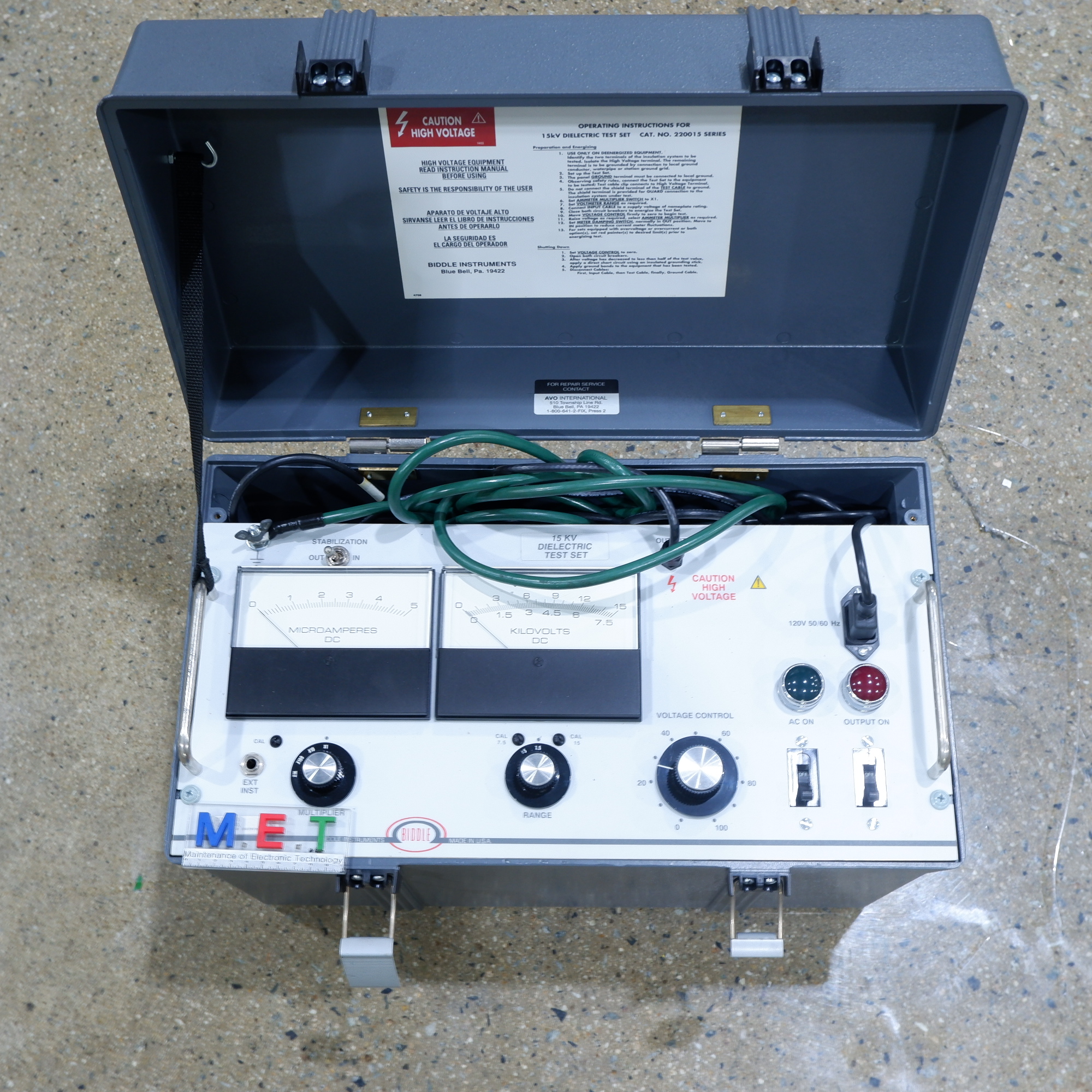 MANUFACTURER : BIDDLE INSTRUMENTS   MODEL : 220015 SERIES 15KV DIELECTRIC TEST SET 220015