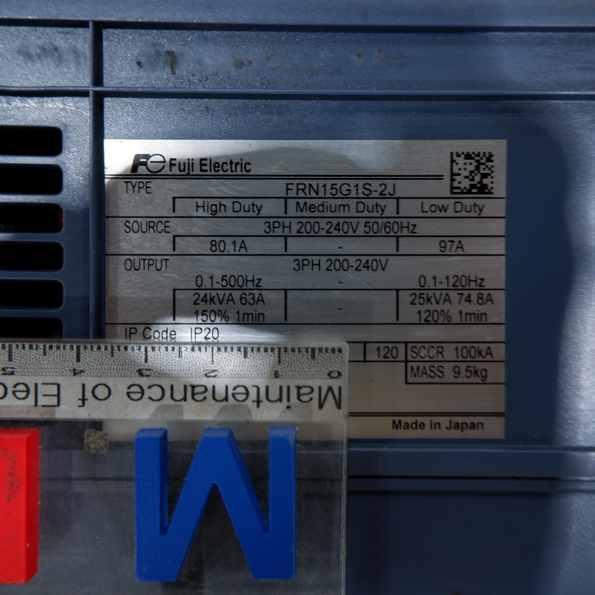 MANUFACTURER : FUJI MODEL : FRENIC-MEGA INVERTER FRN15G1S-2J