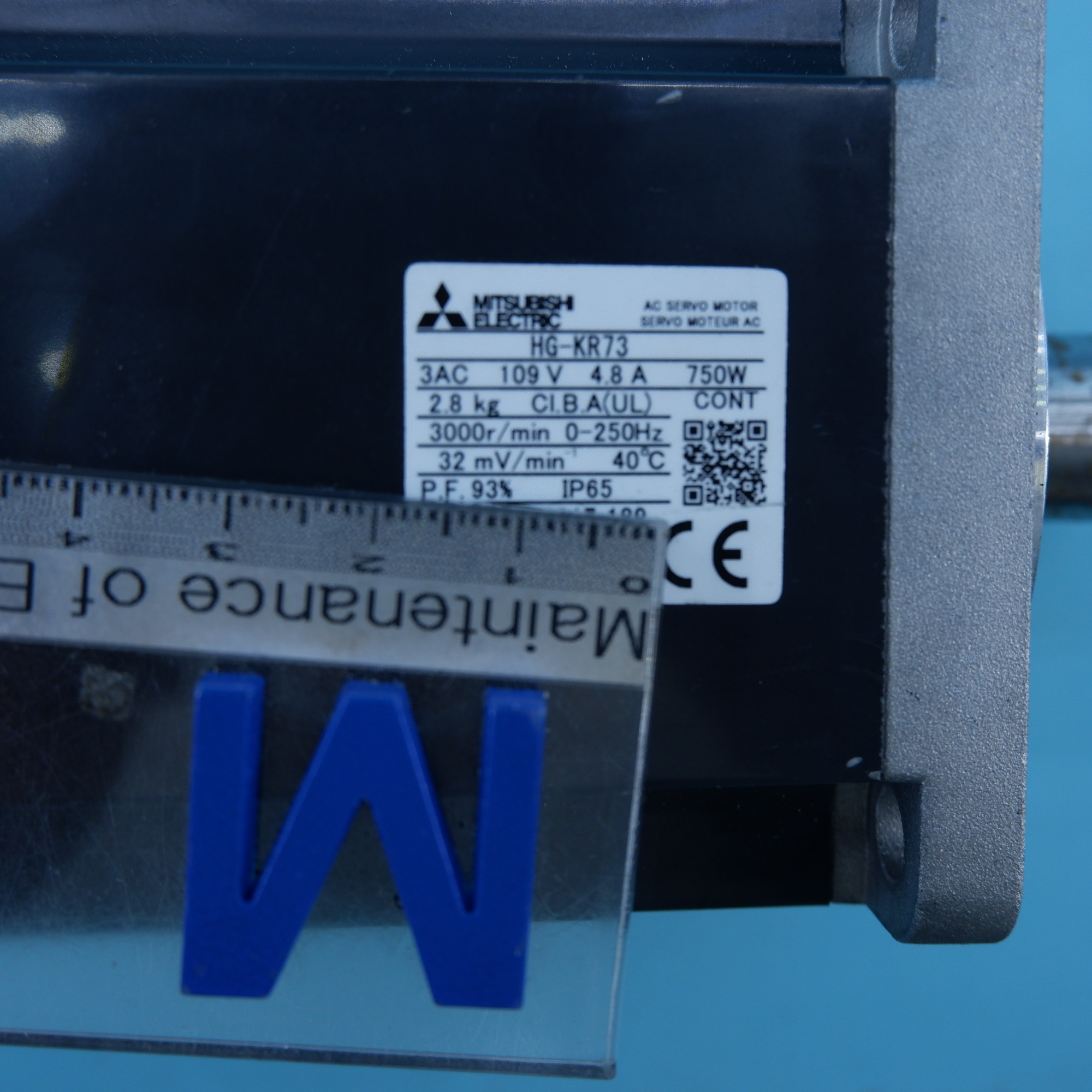 MANUFACTURER : MITSUBISHI MODEL : AC SERVO MOTOR 3AC 109V 4.8A 750W HG-KR73