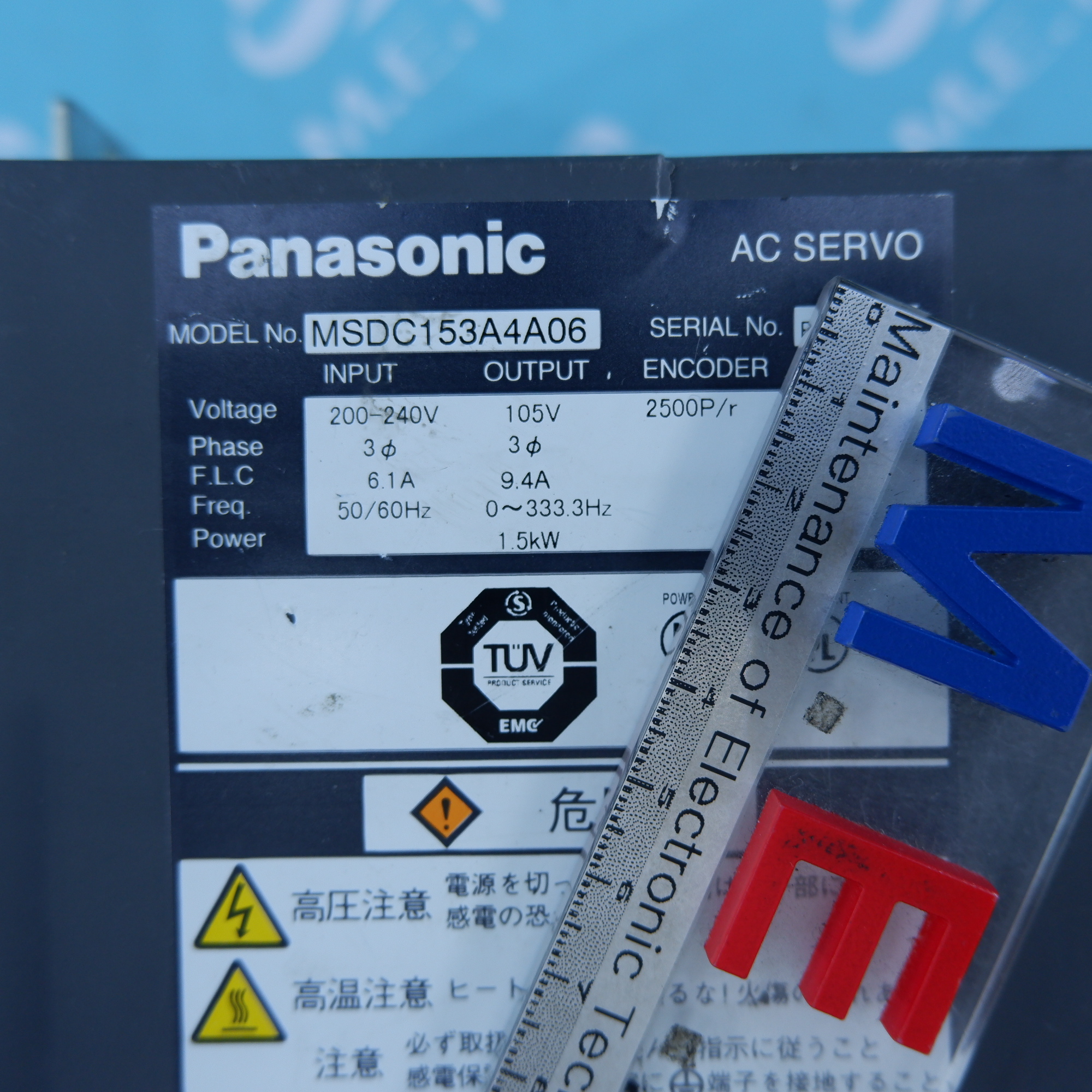MANUFACTURER : PANASONIC MODEL : AC SERVO DRIVER MSDC153A4A06
