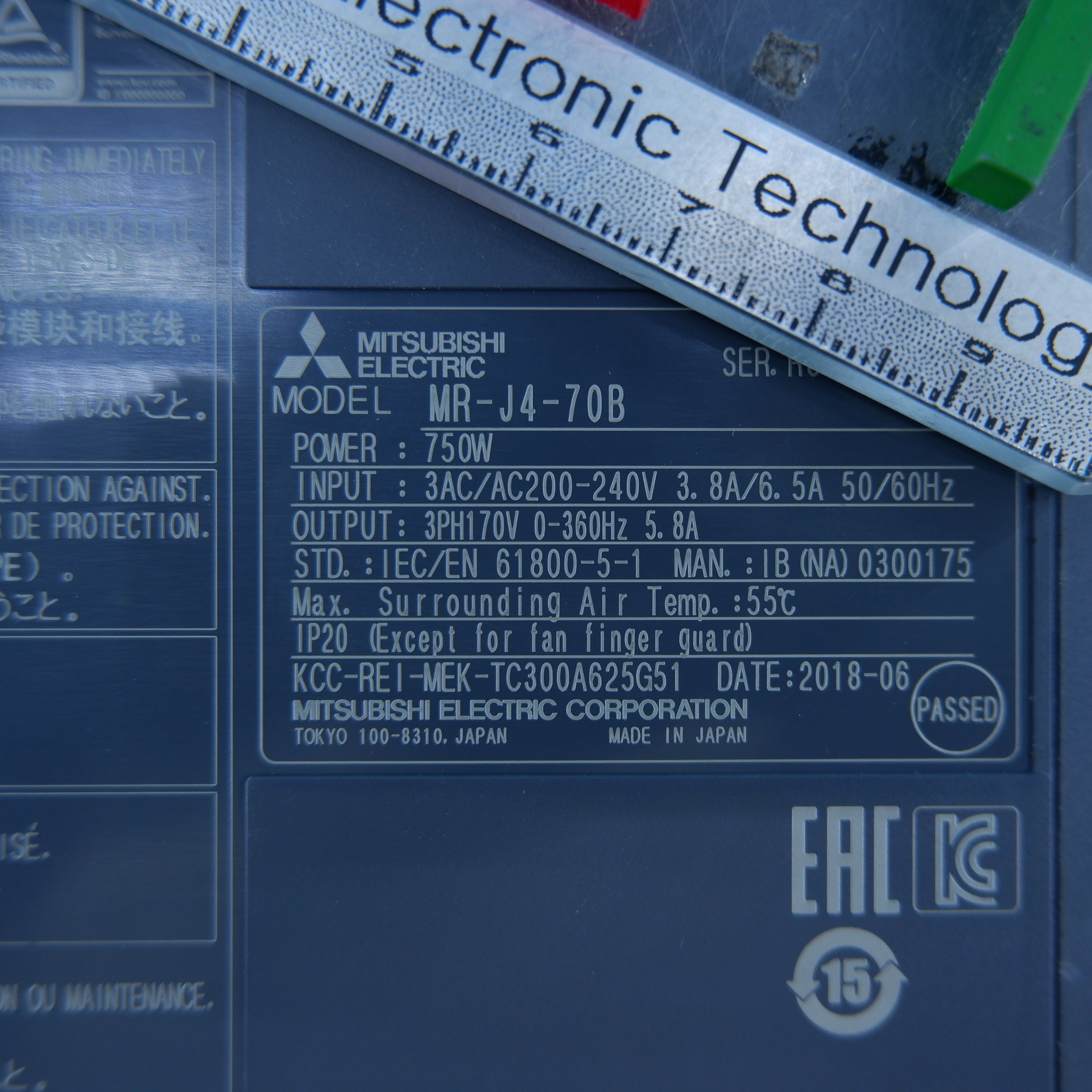 MANUFACTURER : MITUSBISHI MODEL : AC SERVO DRIVER MR-J4-70B