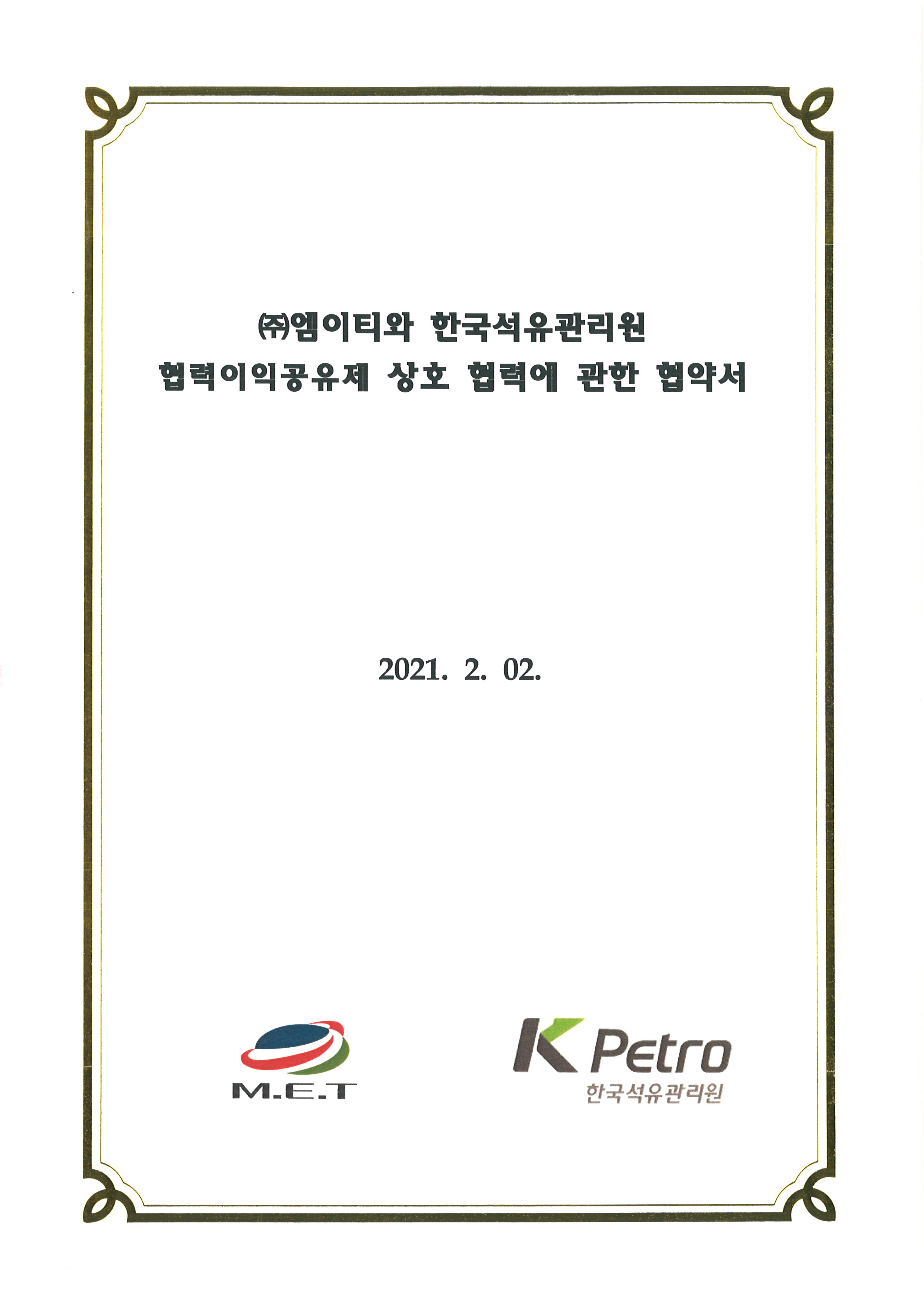 (주)엠이티는 한국석유관리원과 협력이익공유제를 체결하며 기분 좋은 한 해를 시작했습니다.