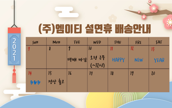 (주)엠이티 설연휴 배송 안내드립니다!!