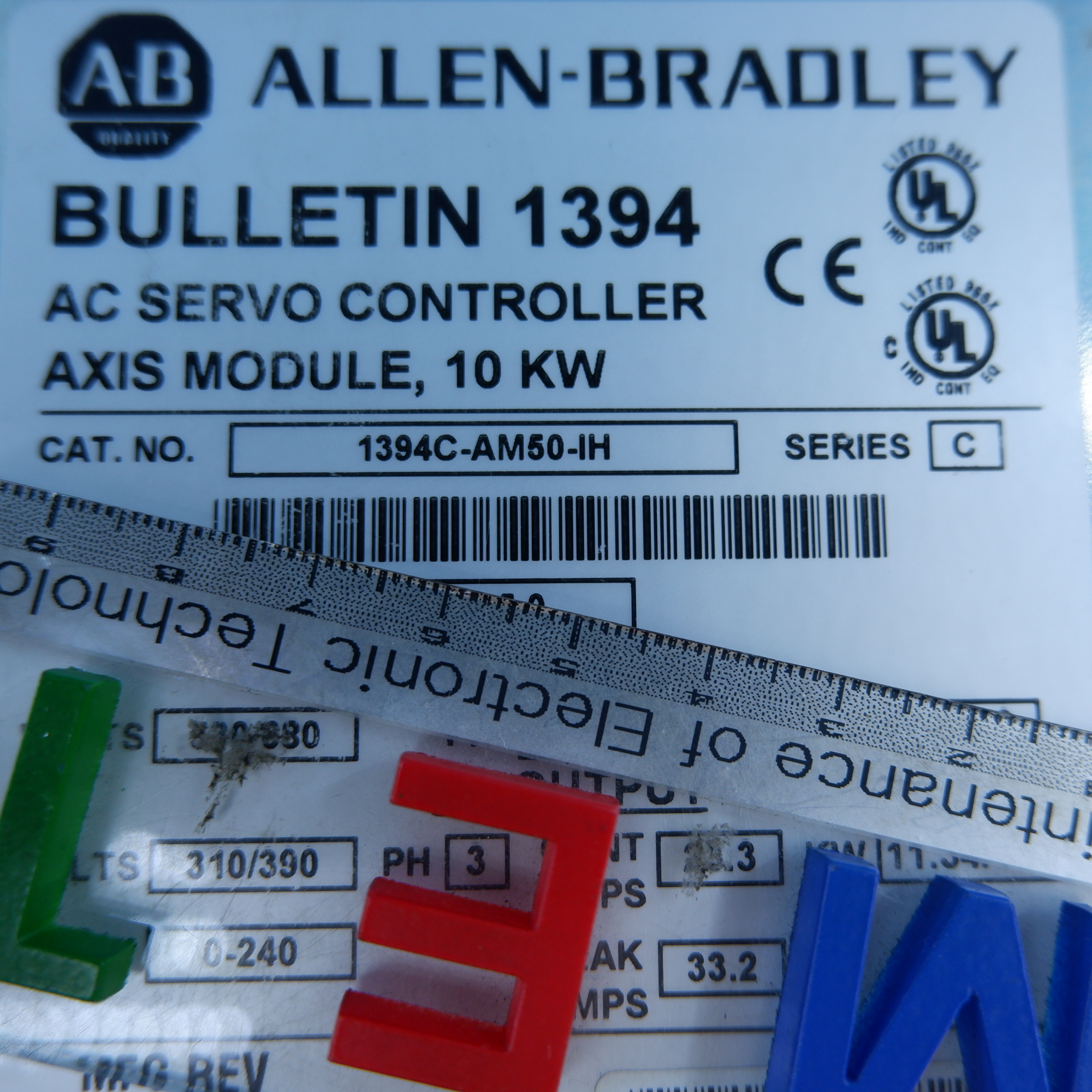 MANUFACTURER : ALLEN-BRADLEY MODEL : AC SERVO CONTROLLER AXIS MODULE 10KW 1394C-AM50-IH SERIES C