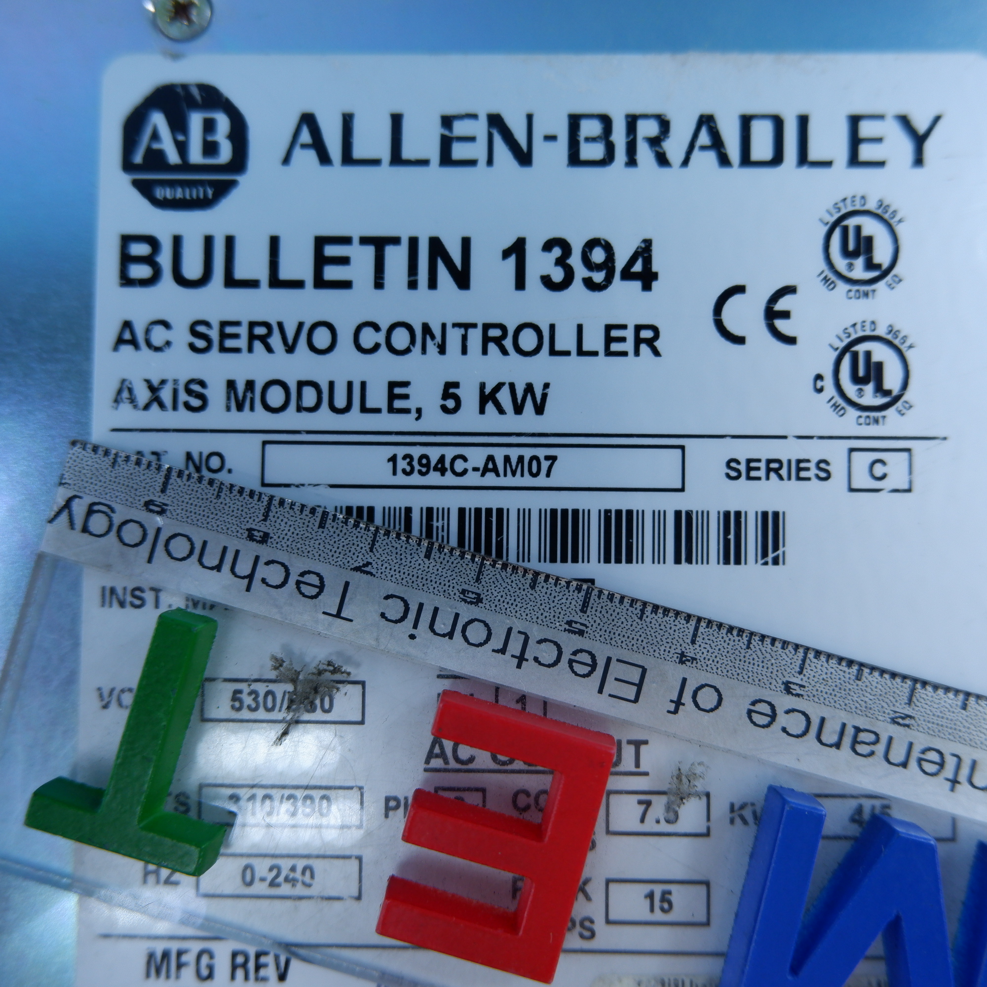 MANUFACTURER : ALLEN-BRADLEY MODEL : AC SERVO CONTROLLER AXIS MODULE 5KW 1394C-AM07 SERIES C