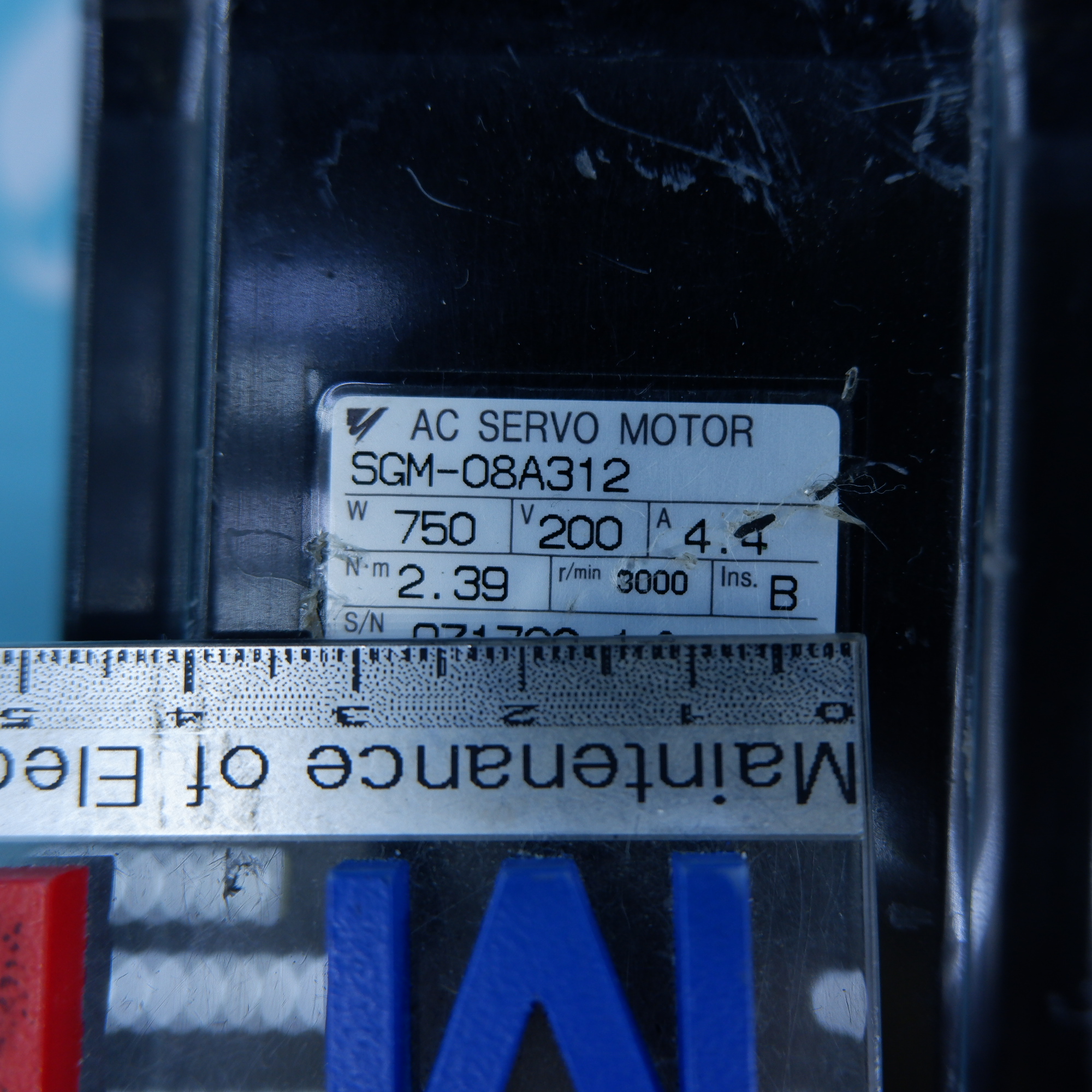 MANUFACTURER : YASKAWA MODEL : AC SERVO MOTOR SIGMA SERISE SGM-08A312(CABLE BROKEN)
