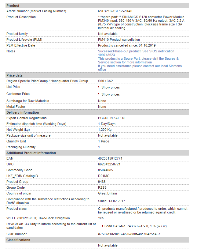 6SL3210-1SE12-2UA0(출처 : 지멘스인더스트리 /https://mall.industry.siemens.com/mall/en/WW/Catalog/Product/6SL32101SE122UA0_)