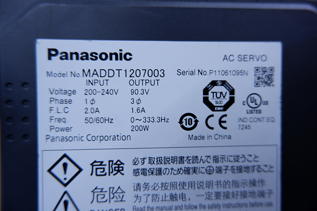 MANUFACTURER : PANASONIC MODEL : SERVO DRIVER MADDT1207003