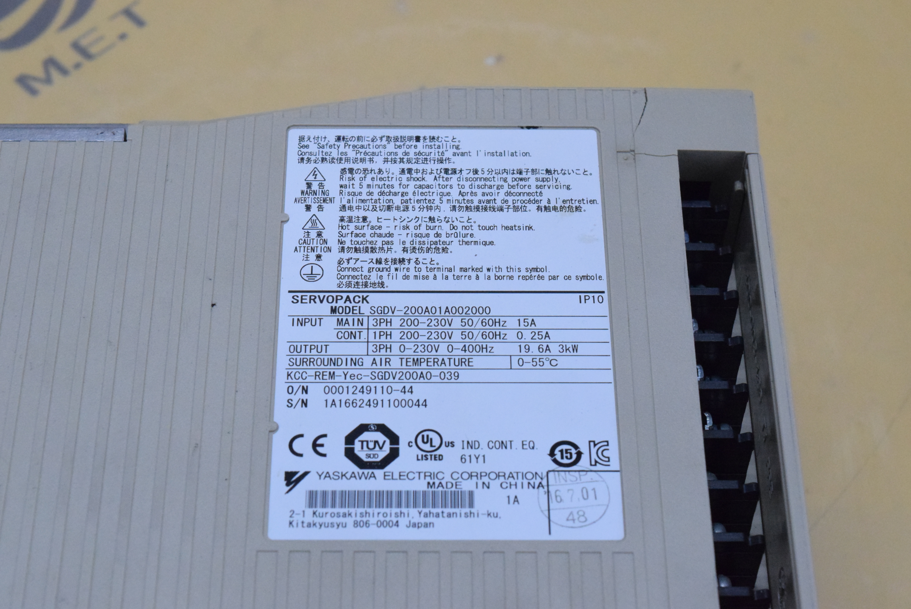 YASKAWA SGDV-200A01A002000 SERVO DRIVER 산업용 자동화 장비 수리 (주)엠이티