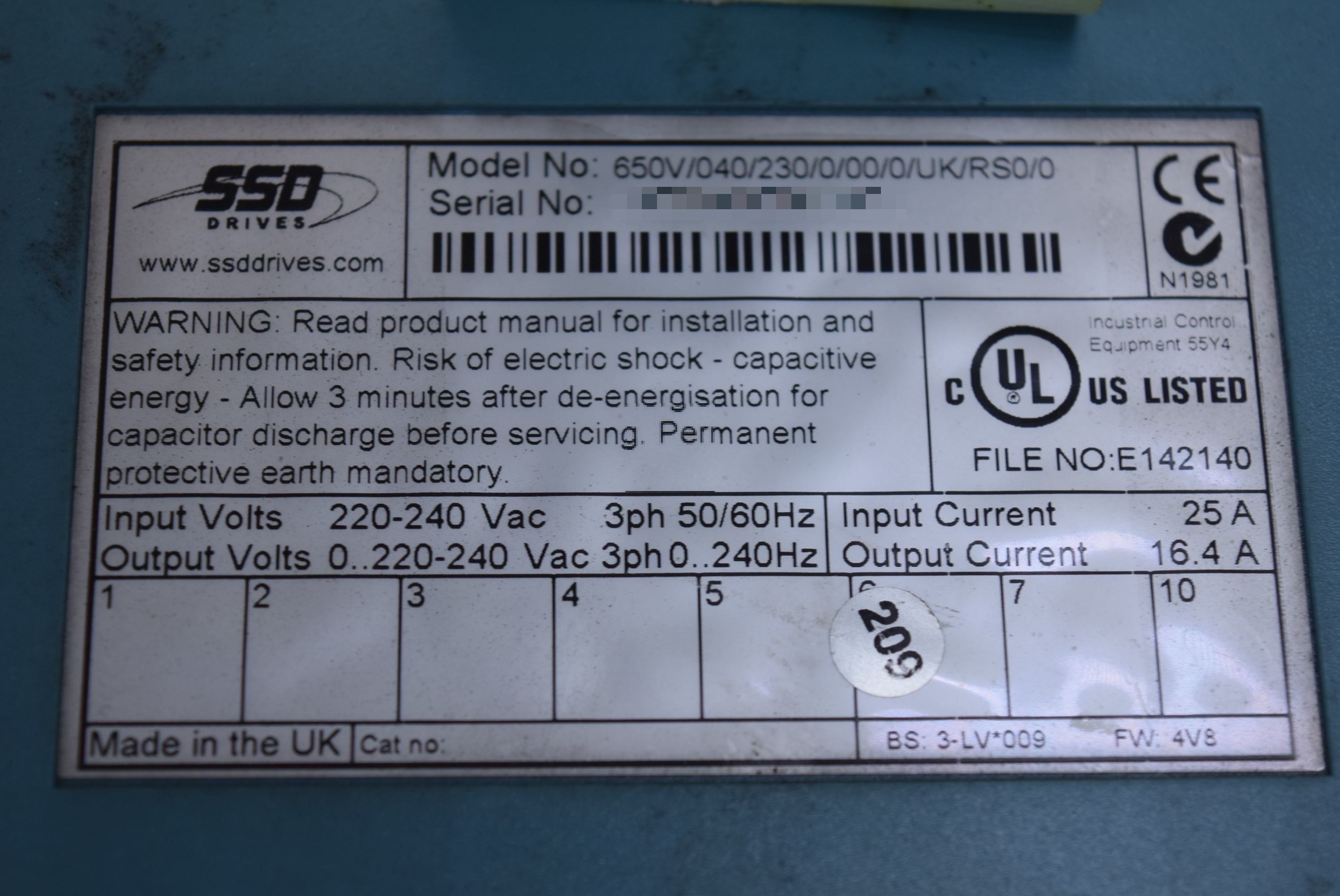 | 모델명 : 650V/040/230/0/00/0/UK/RS0/0 품목명 : DRIVE 제조사 : SSD 증상 : 연결 모터 구동 불량 |