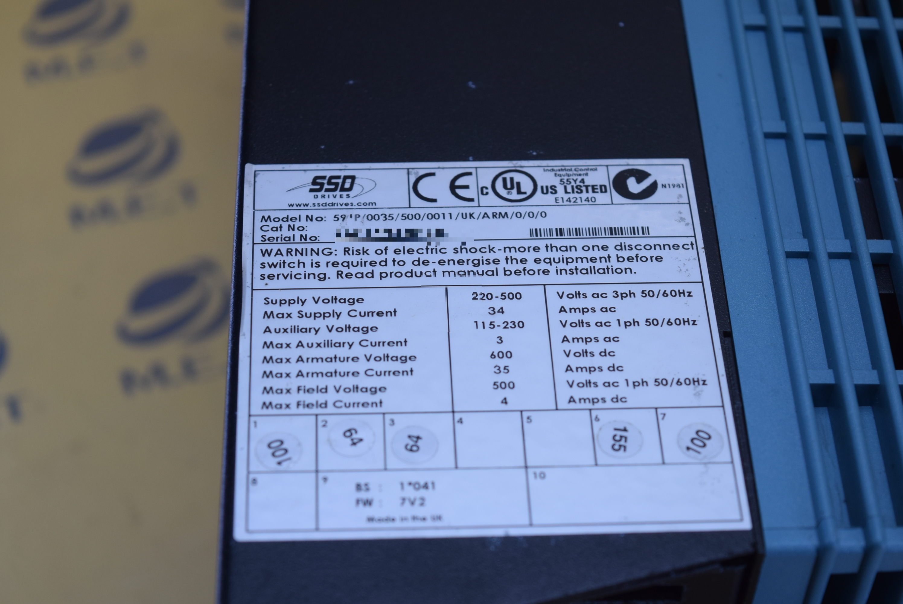| 모델명 : 591P/0035/500/0011/UK/ARM/0/0/0 품목명 : INVERTER 제조사 : SSD 증상 : 전원 불량 |