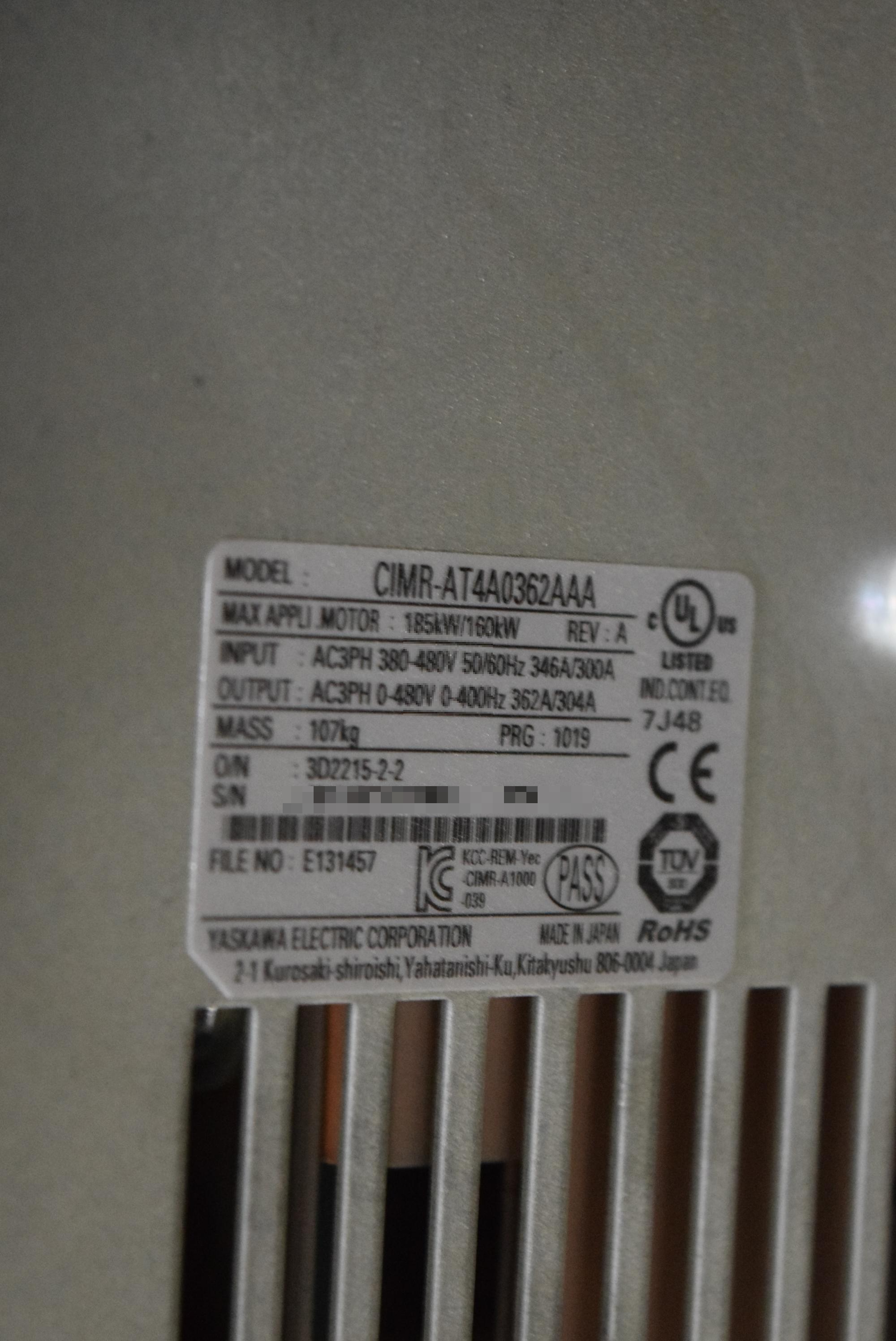 | 모델명 : CIMR-AT4A0362AAA 품목명 : INVERTER 제조사 : YASKAWA 증상 : UV 알람 발생 |