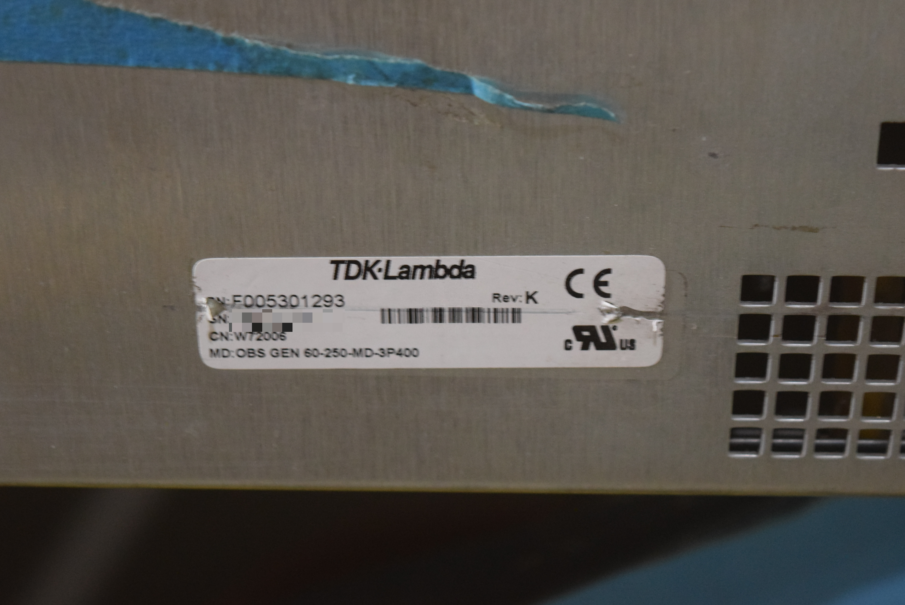 | 모델명 : OBS GEN 60-250-MD-3P400 품목명 : POWER SUPPLY 제조사 : TDK-LAMBDA 증상 : 출력 불량 |