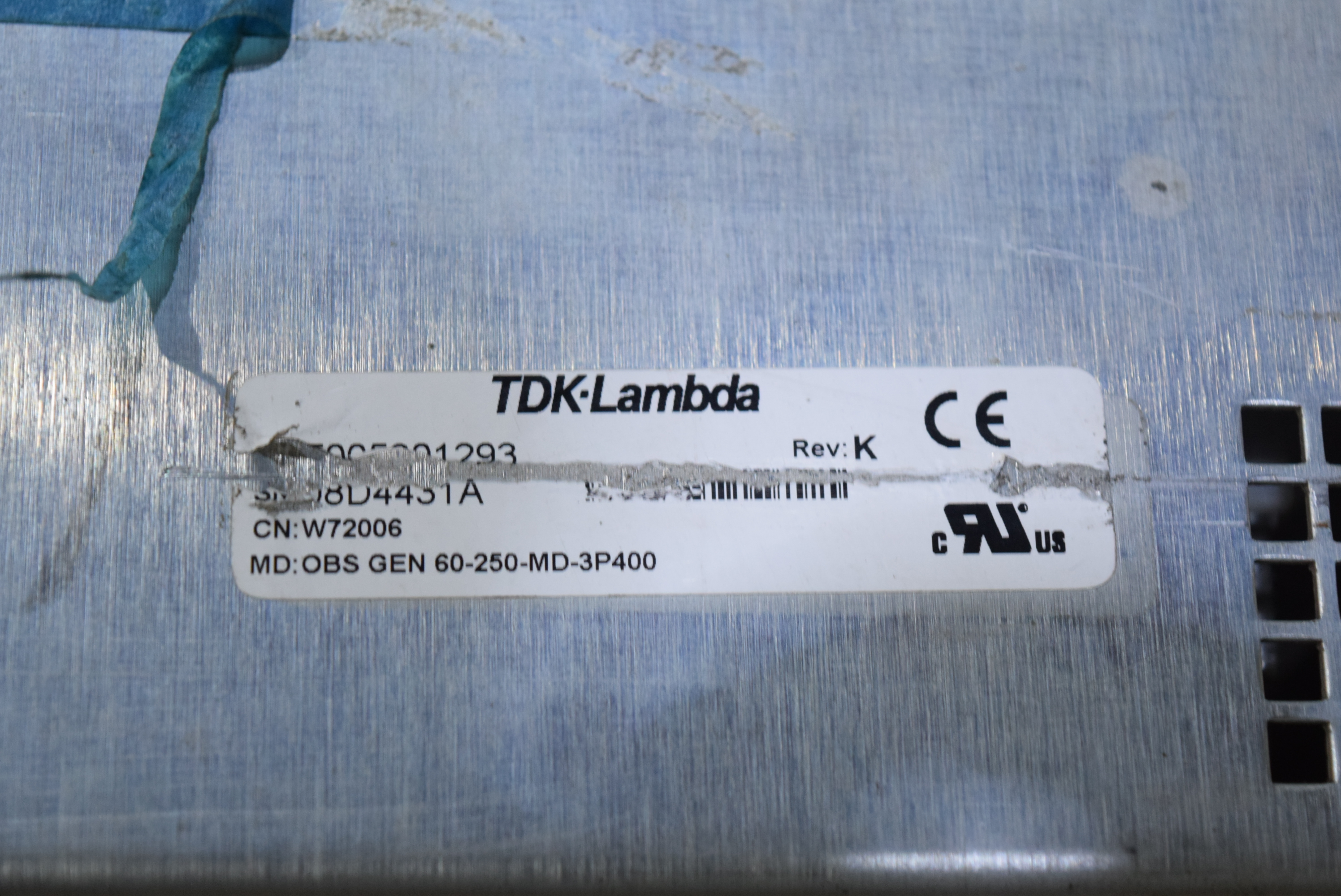 | 모델명 : OBS GEN 60-250-MD-3P400 품목명 : POWER SUPPLY 제조사 : TDK-LAMBDA 증상 : 출력 불량 |