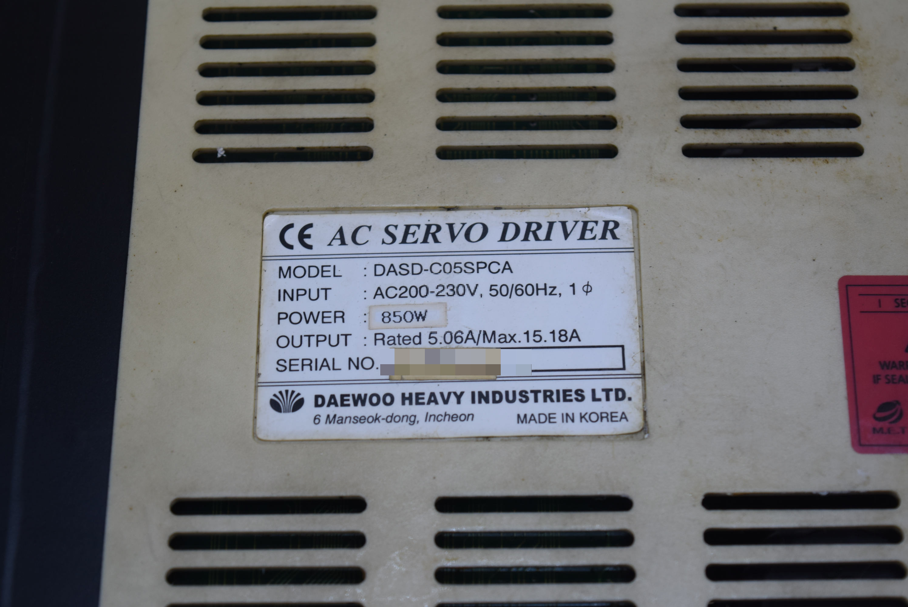품목명 : SERVO DRIVER