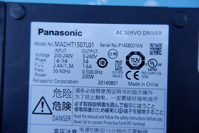 MANUFACTURER : PANASONIC MODEL : AC SERVO DRIVER MADHT1507L01