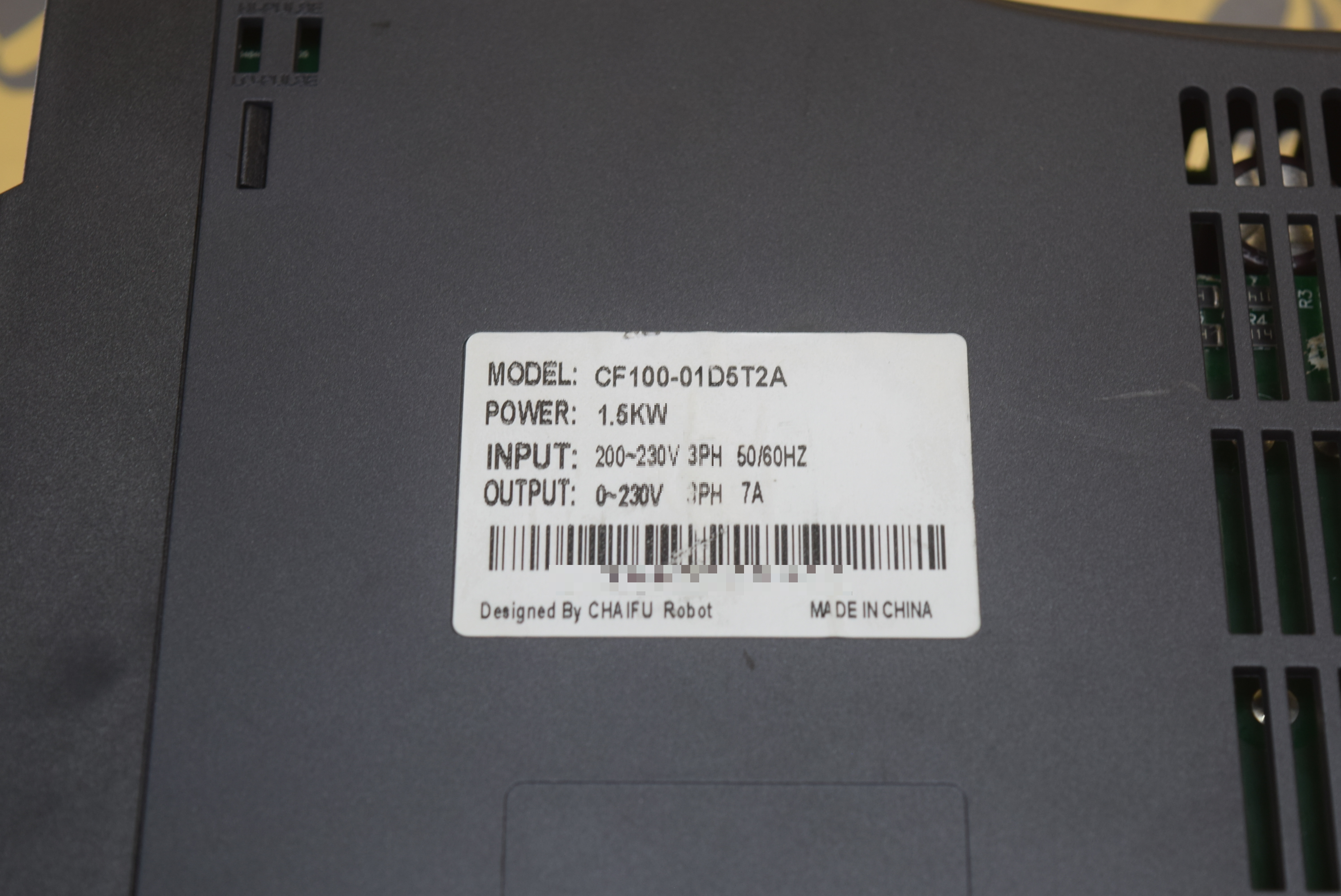| 모델명 : CF100-01D5T2A 품목명 : DRIVE 제조사 : CHAIFU ROBOT 증상 : 전원 불량  |
