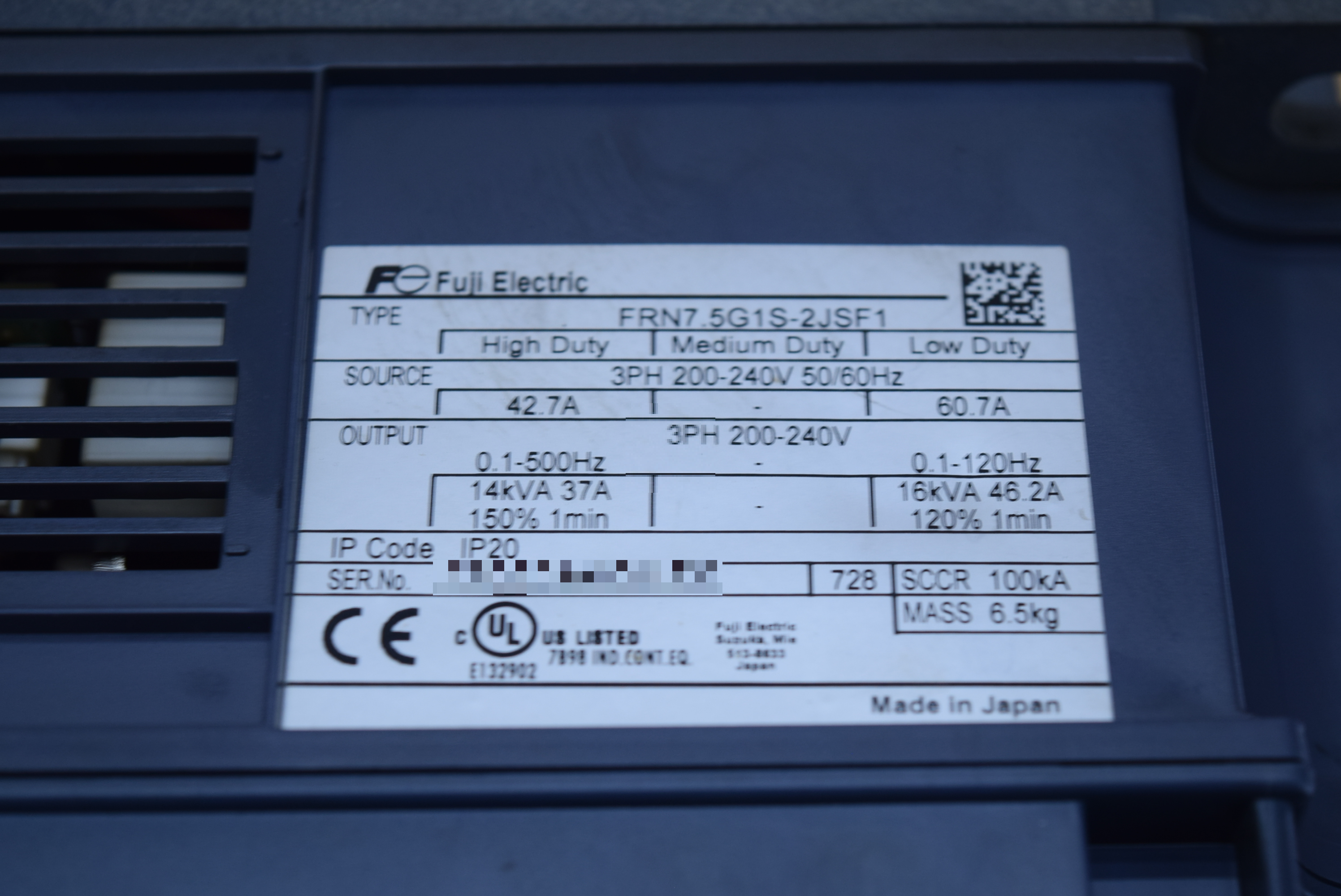 | 모델명 : FRN7.5G1S-2JSF1 품목명 : INVERTER 제조사 : FUJI ELECTRIC 증상 : OC3 에러 발생 |