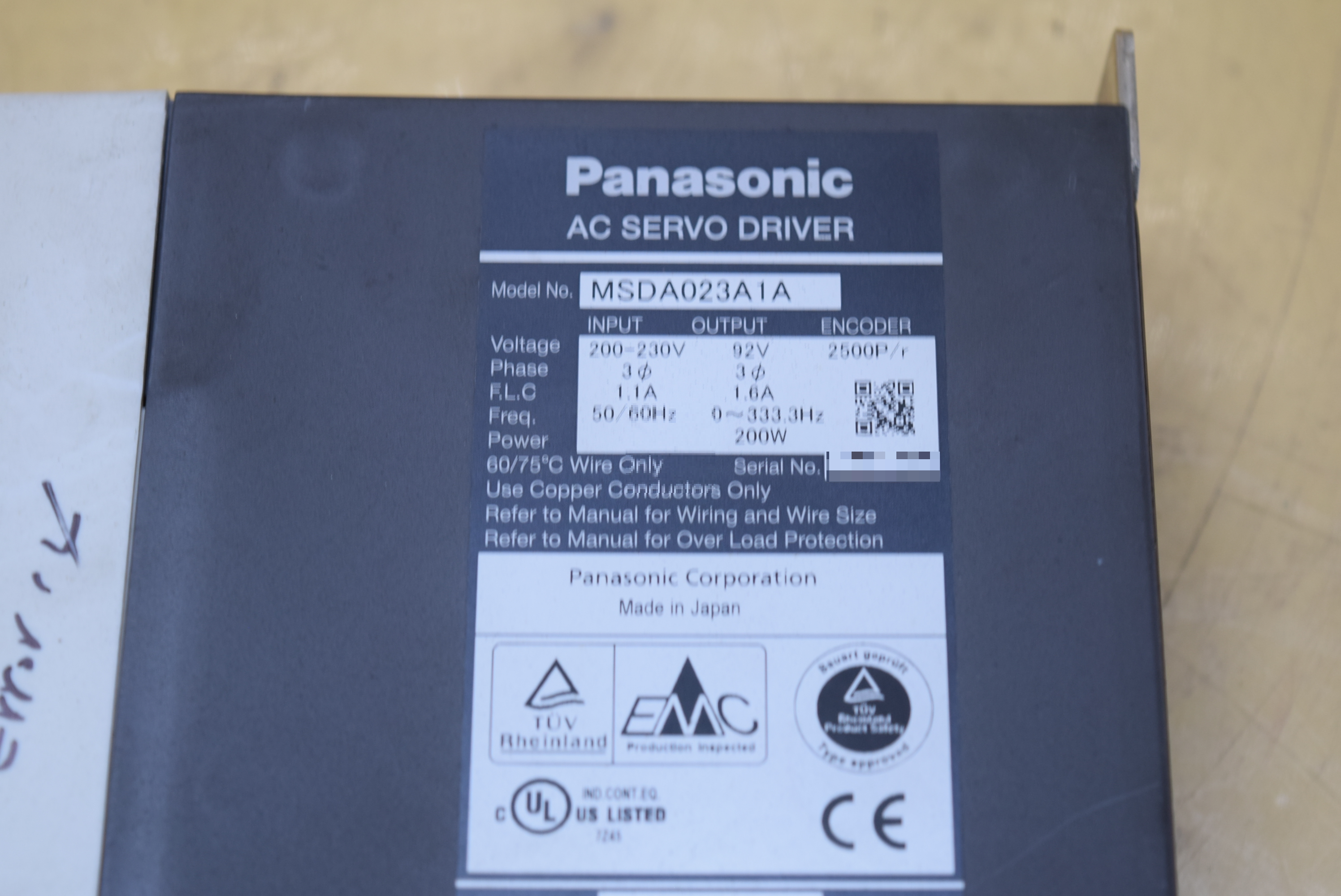 | 모델명 : MSDA023A1A 품목명 : SERVO DRIVER 제조사 : PANASONIC [공식서비스센터] 증상 : 전원 불량 |