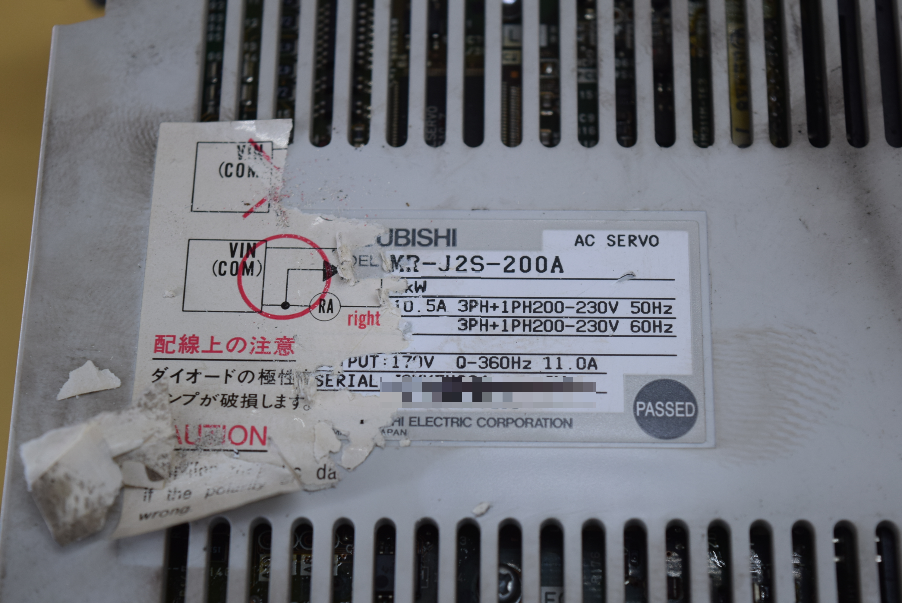 | 모델명 : MR-J2S-200A 품목명 : SERVO DRIVER 제조사 : MITSUBISHI 증상 : E9 알람 발생 |