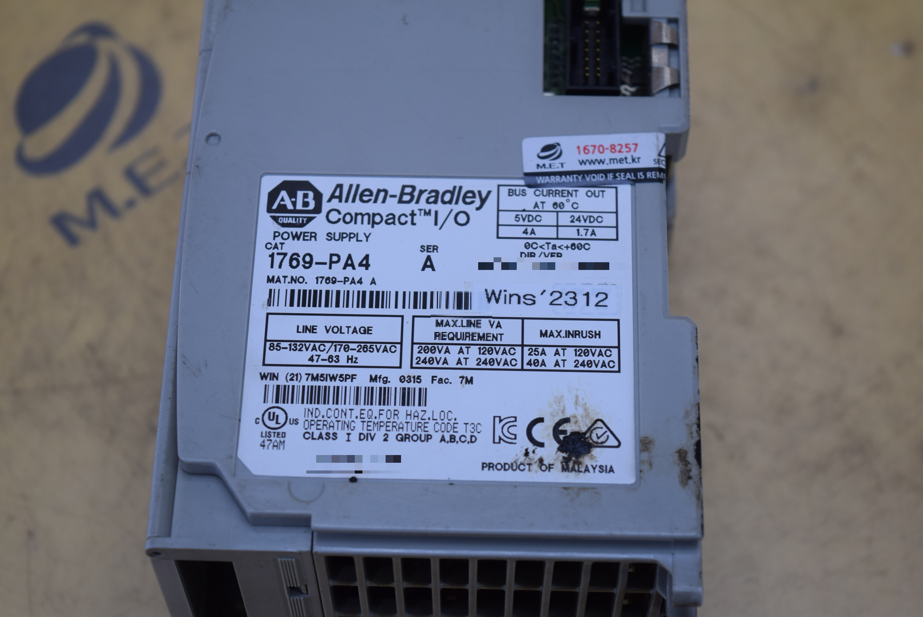 | 모델명 : 1769-PA4 품목명 : COMPACT POWER SUPPLY 제조사 : ALLEN-BRADLEY 증상 : 1분 간격으로 전원 리셋됨 |
