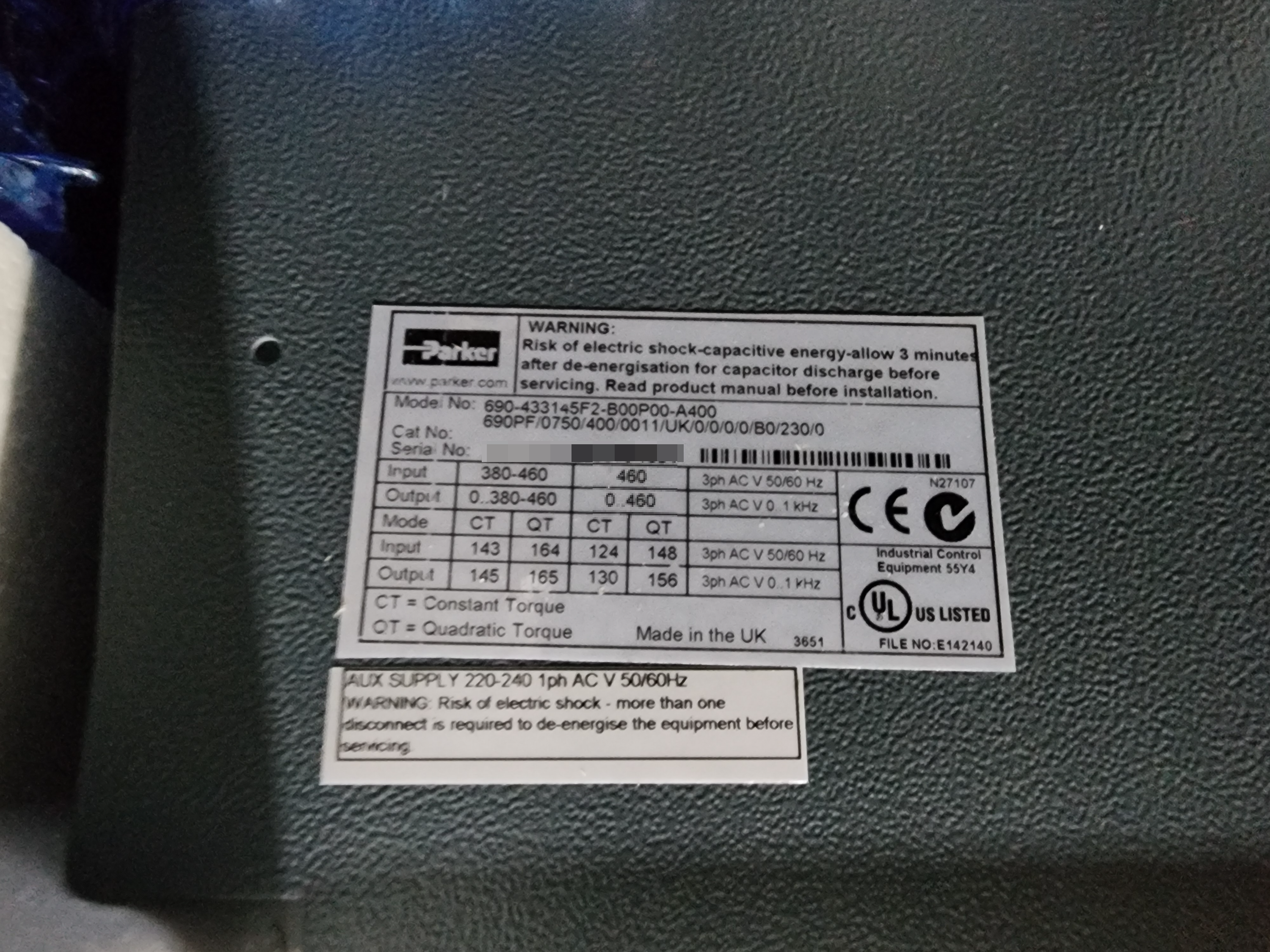 | 모델명 : 690-433145F2-B00P00-A400 품목명 : INVERTER 제조사 : PARKER 증상 : 오버홀 요청 및 전체 진단 요청 |