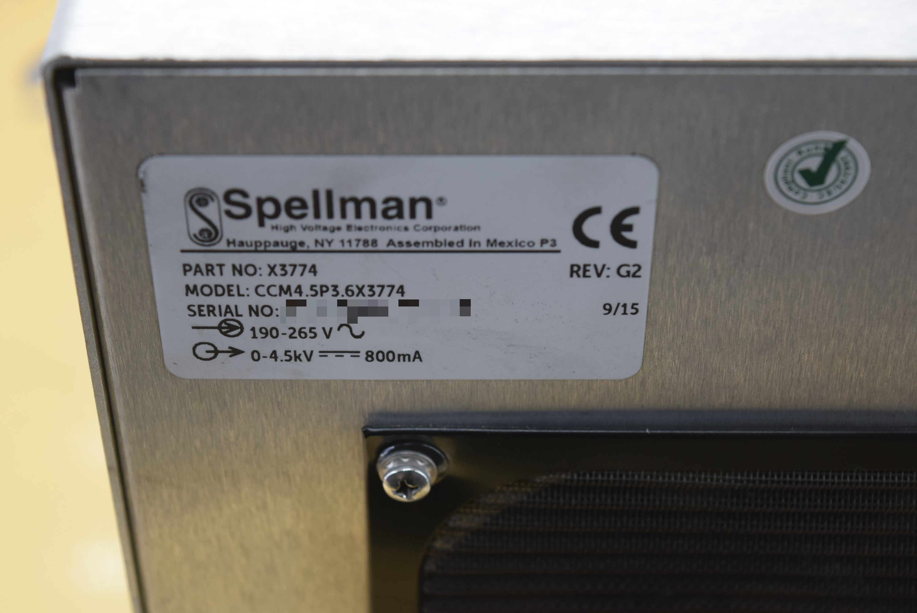 | 모델명 : CCM4.5P3.6X3774 품목명 : POWER SUPPLY 제조사 : SPELLMAN 증상 : HIGH VOLTAGE 출력 불량 |