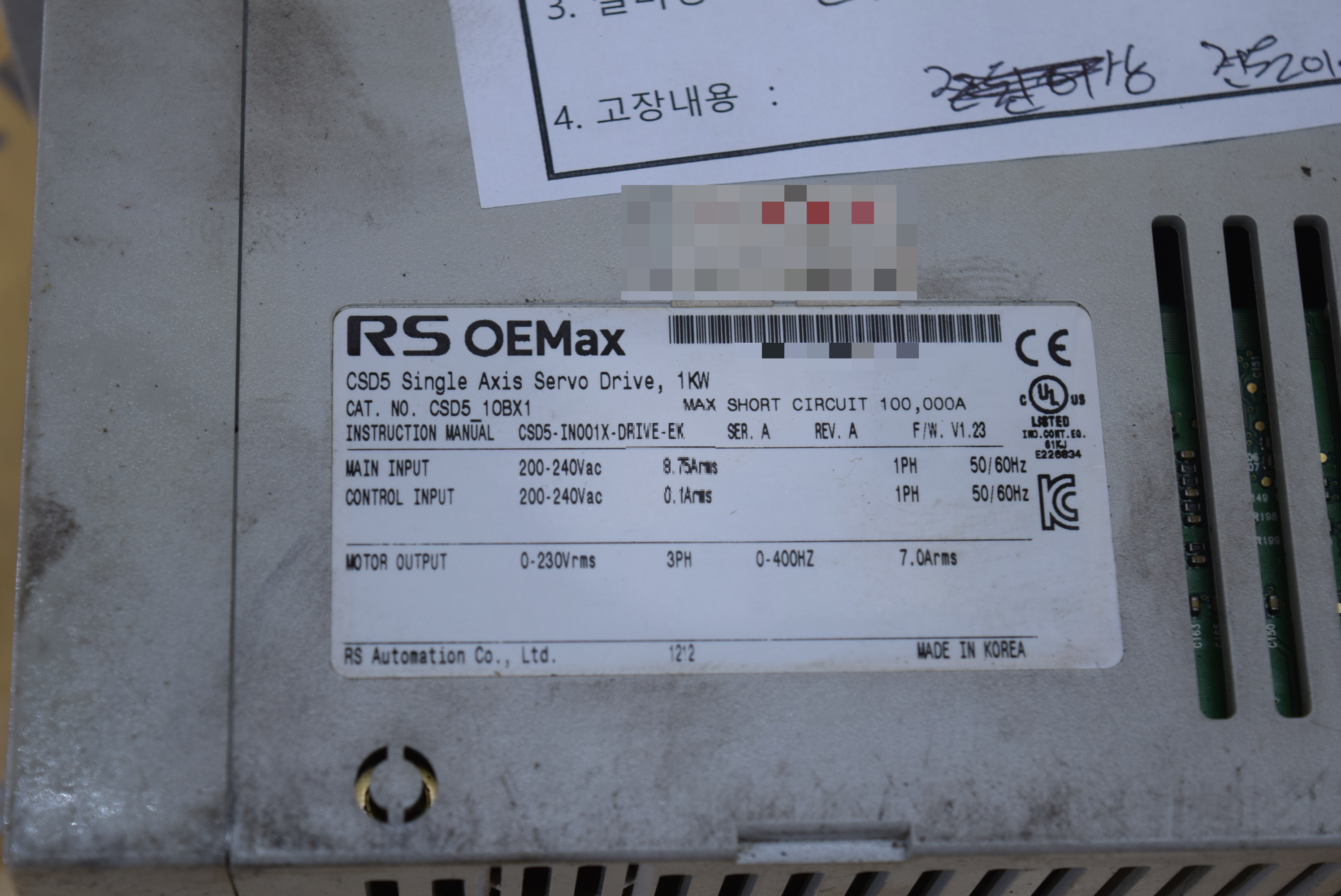 RS OEMAX CSD5_10BX1 SERVO DRIVER 산업용 자동화 장비 수리 (주)엠이티