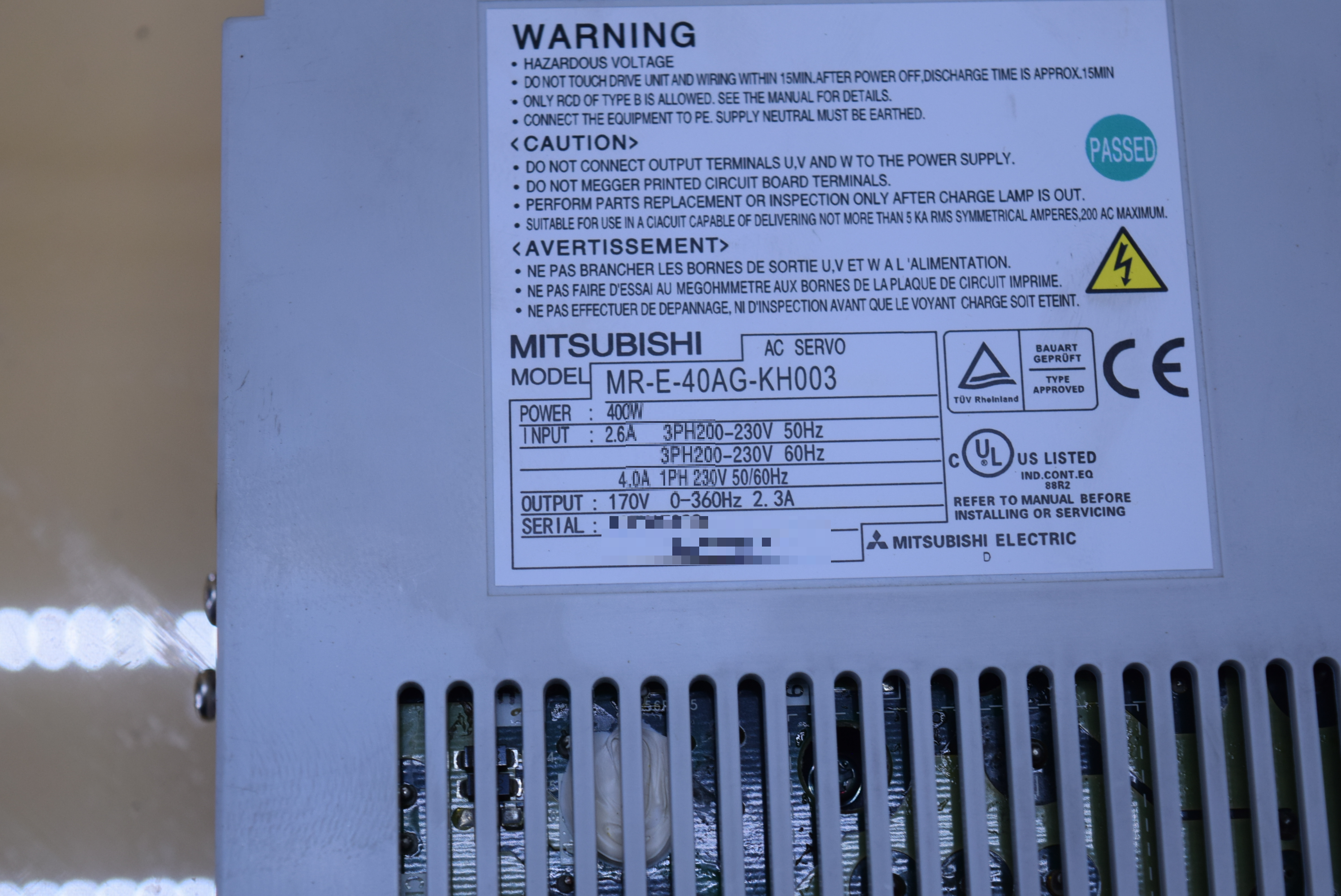 | 모델명 : MR-E-40AG-KH003 품목명 : SERVO DRIVER 제조사 : MITSUBISHI 증상 : 오버로드 알람 발생 |