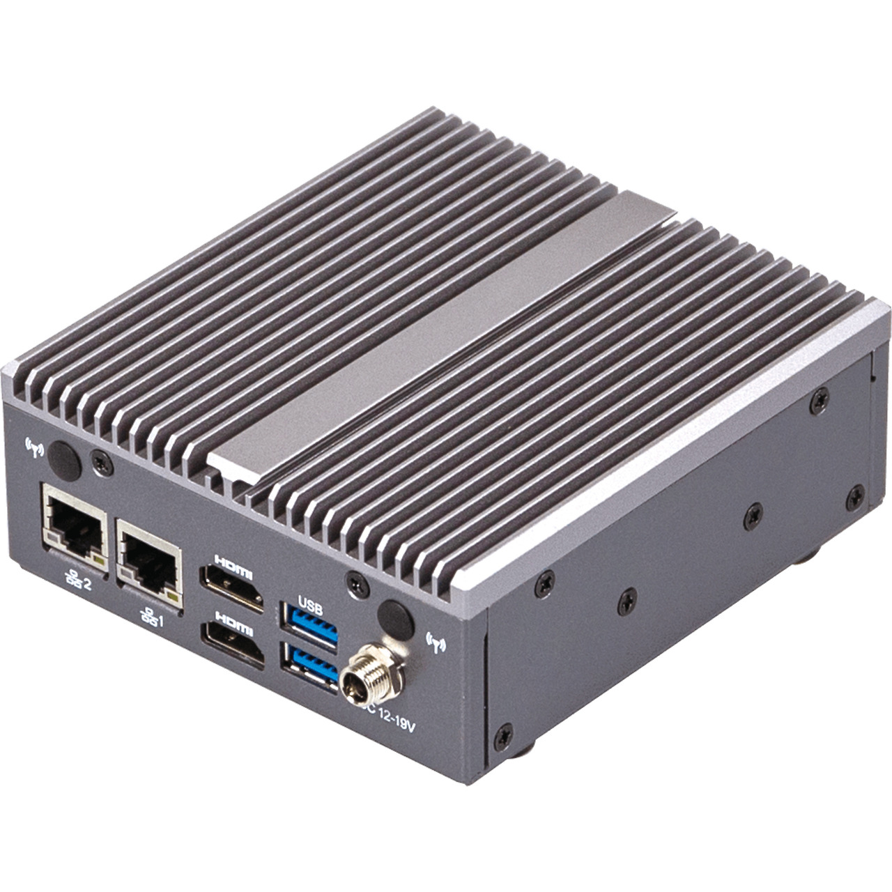 Industrial system with Intel® Celeron® J4125 Processor/ Lockable DC Connector/ 2 x HDMI / 2 x LAN Ports/ 1 x Headphone Jack