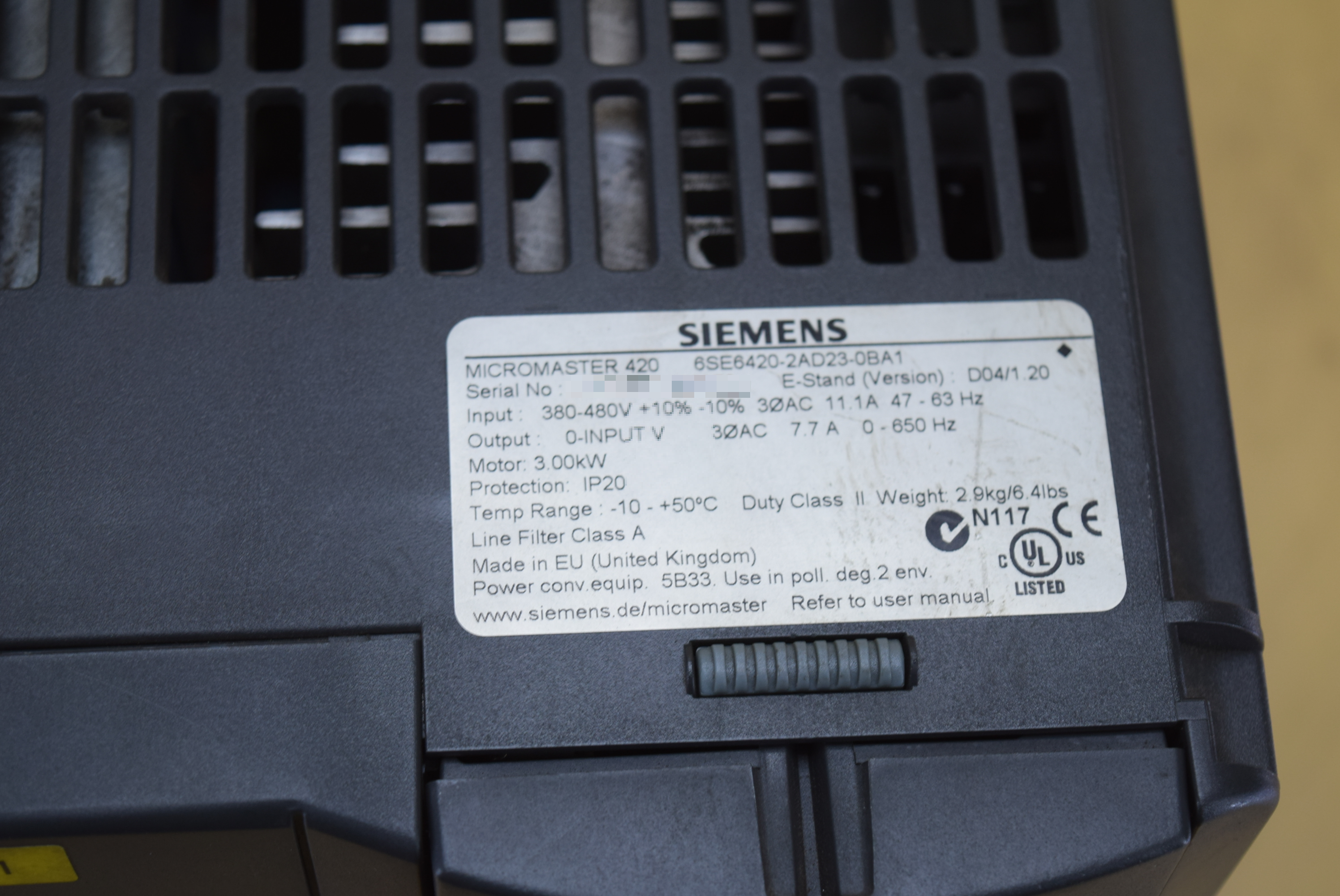 | 모델명 : 6SE6420-2AD23-0BA1 품목명 : DRIVE 제조사 : SIEMENS |