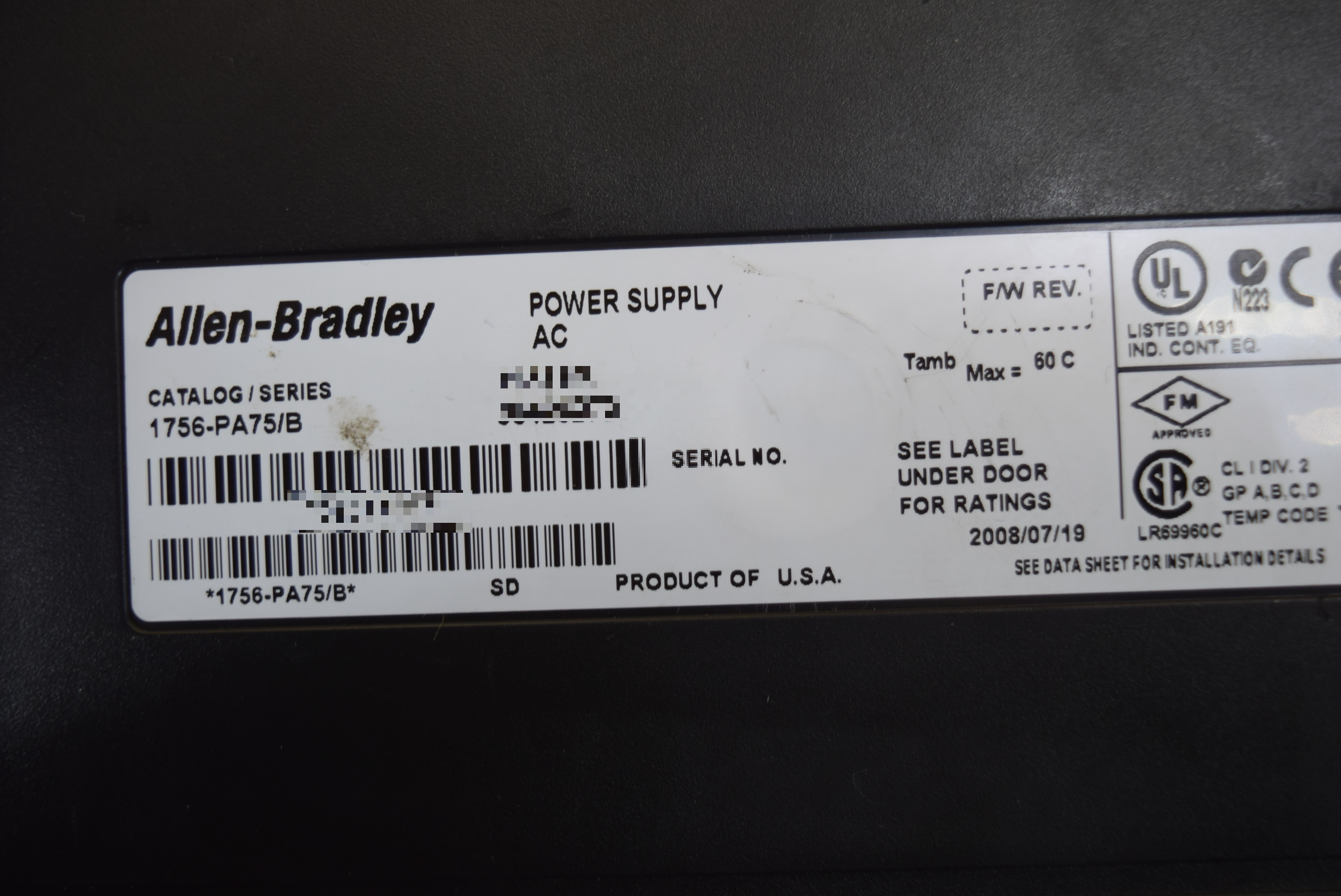 | 모델명 : 1756-PA75/B 품목명 : PLC 제조사 : Allen-Bradley 증상 : CPU 전원 불량 |