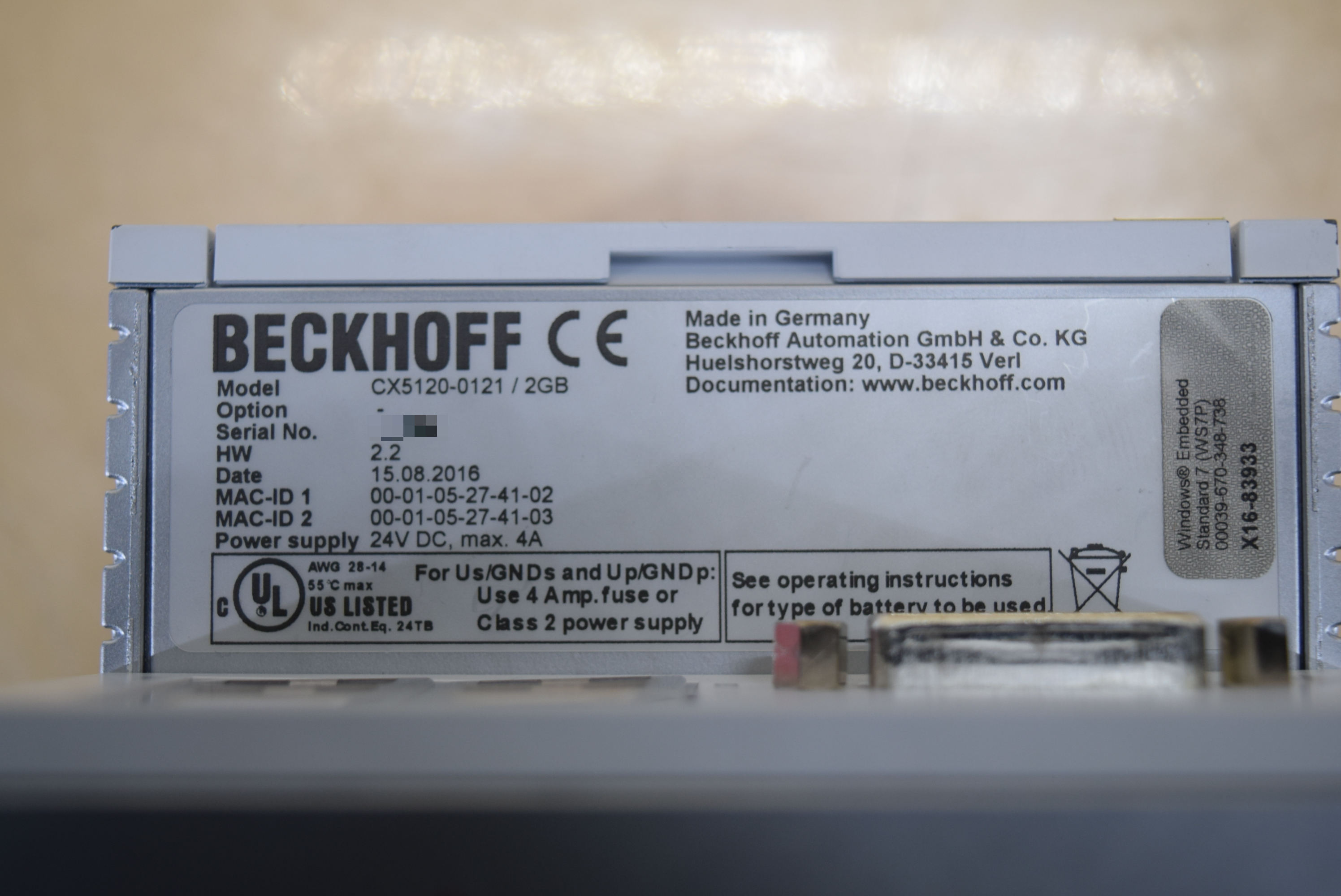 | 모델명 : CX5120-0121/2GB 품목명 : CONTROLLER 제조사 : BECKHOFF 증상 : 부팅 불량 또는 통신 불량 |
