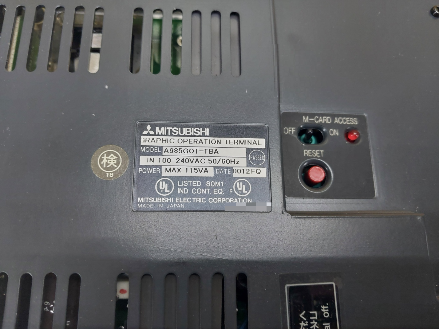 | 모델명 : A985GOT-TBA 품목명 : TOUCH PANEL 제조사 : MITSUBISHI 증상 : 터치 불량 |