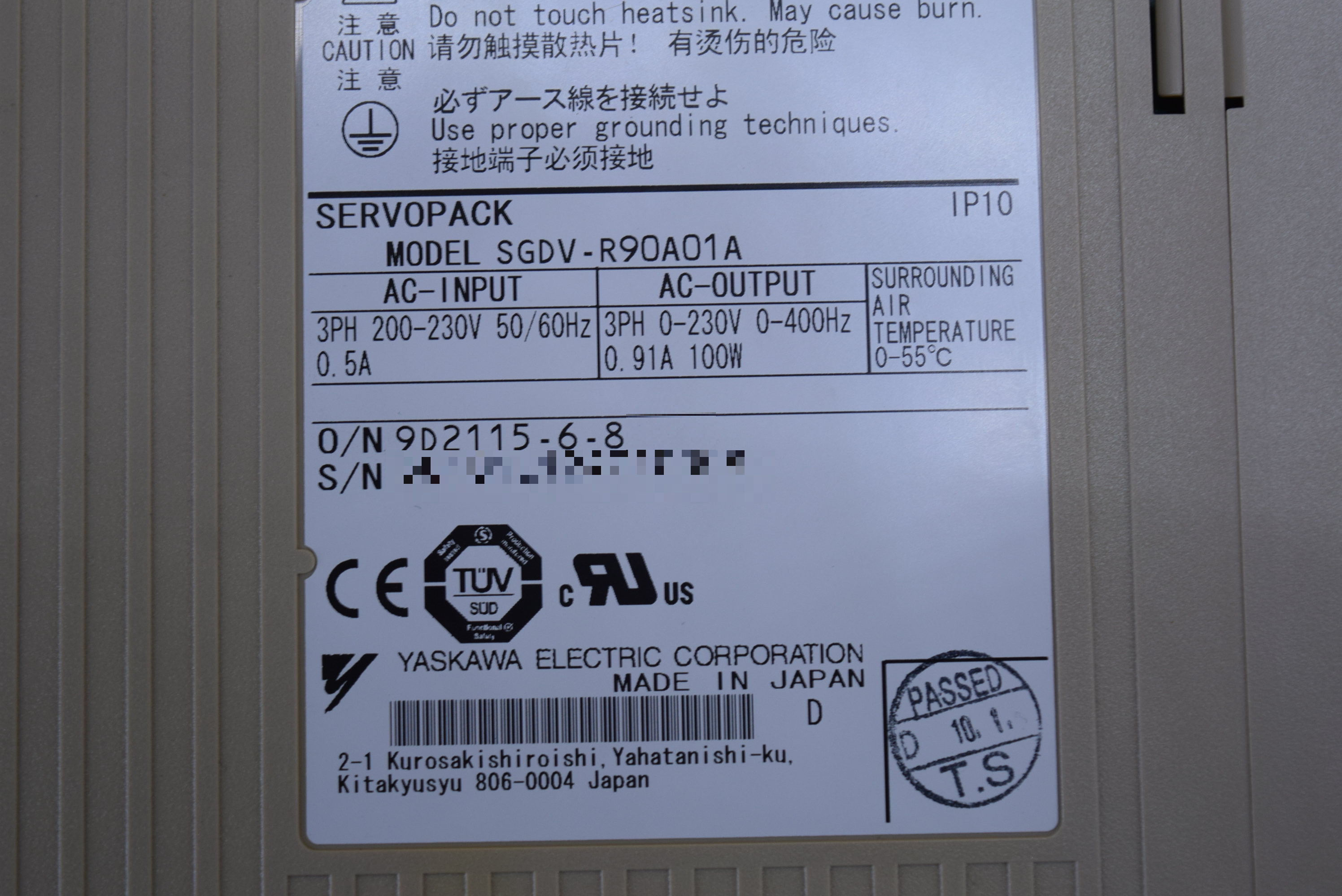 | 모델명 : SGDV-R90A01A 품목명 : SERVO DRIVER 제조사 : YASKAWA 증상 : 7AB 알람발생 |