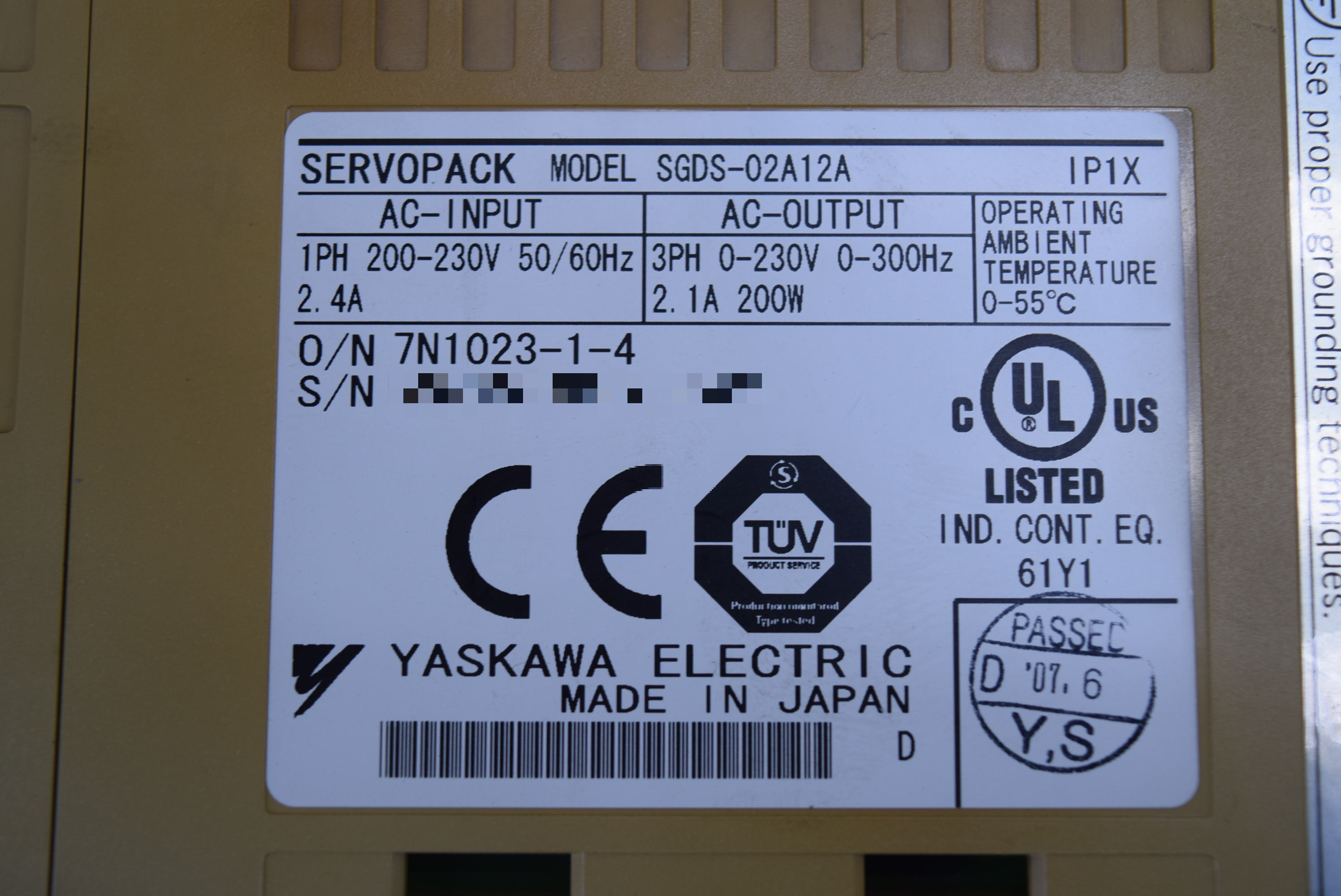 | 모델명 : SGDS-02A12A 품목명 : SERVO DRIVER 제조사 : YASKAWA 증상 : 전원 불량 |
