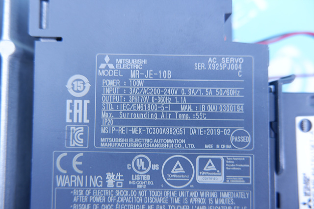 MANUFACTURER : MITSUBISHI MODEL : SERVO DRIVER MR-JE-10B