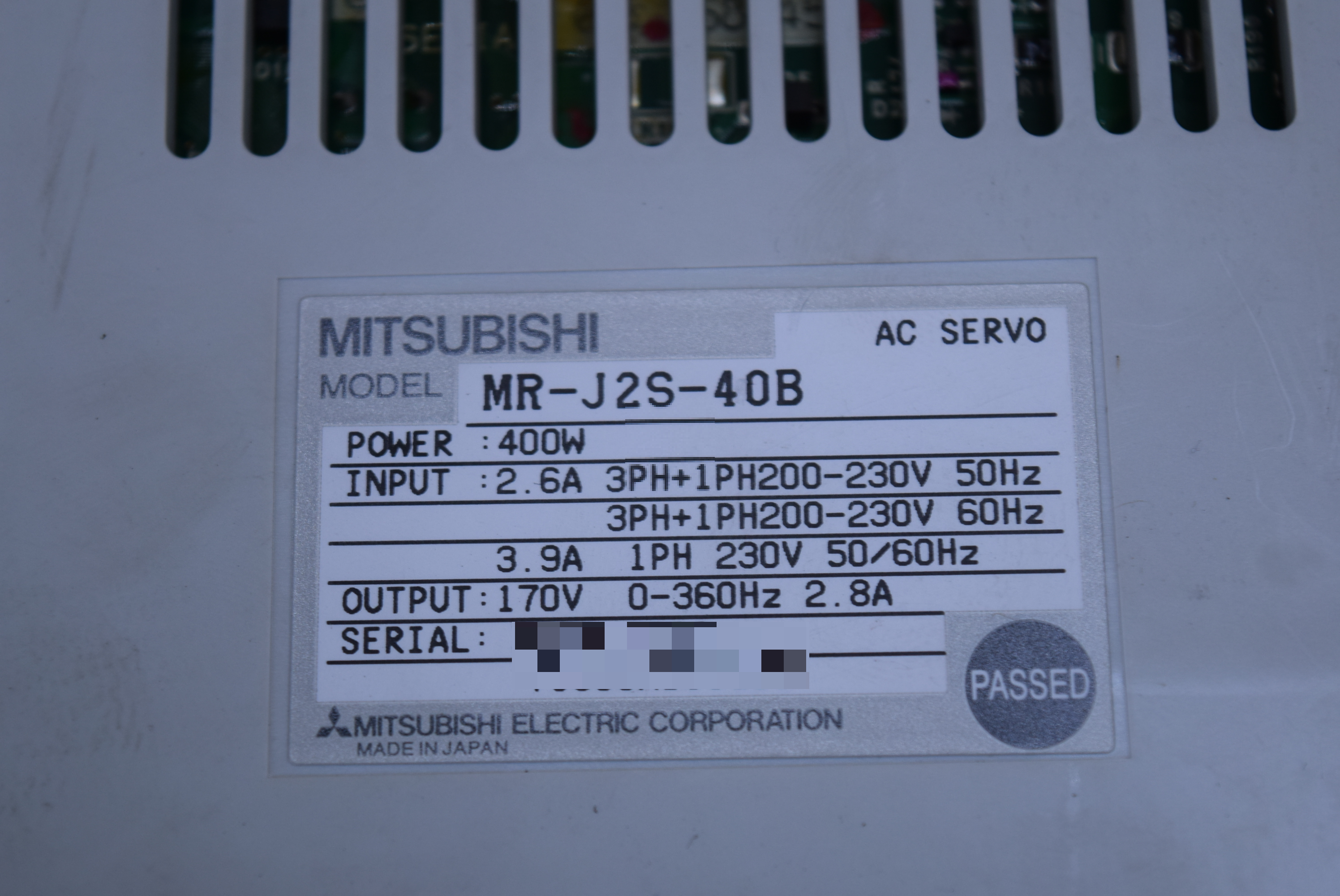 | 모델명 : MR-J2S-40B 품목명 : SERVO DRIVER 제조사 : MITSUBISHI 증상 : E9 알람 발생 |