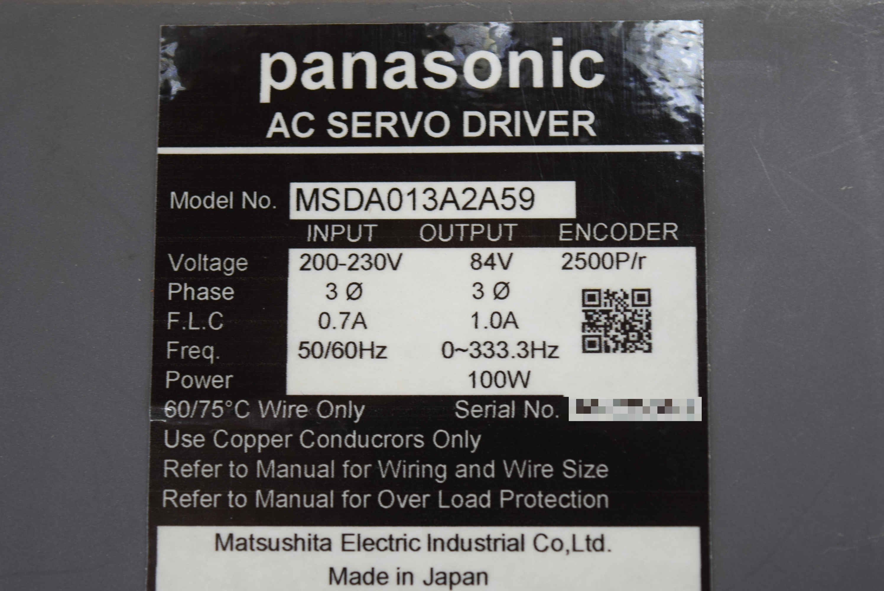 | 모델명 : MSDA013A2A59 품목명 : SERVO DRIVER 제조사 : PANASONIC [공식서비스센터] |