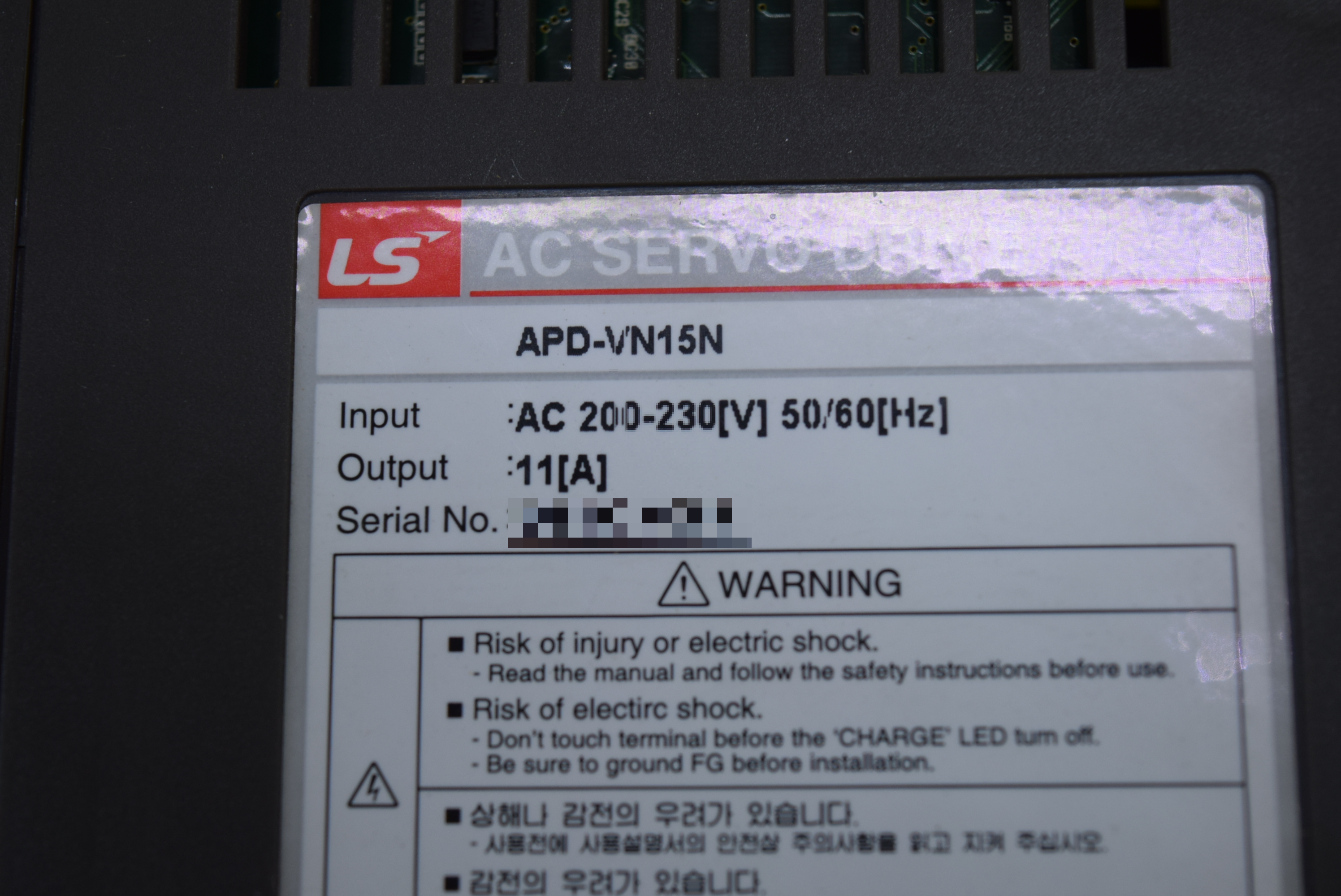 | 모델명 : APD-VN15N 품목명 : SERVO DRIVER 제조사 : LS 증상 : ENCODER 단선 알람 발생 |