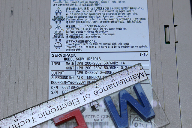 MANUFACTURER : YASKAWA MODEL : SERVO DRIVER SGDV-1R6A01B