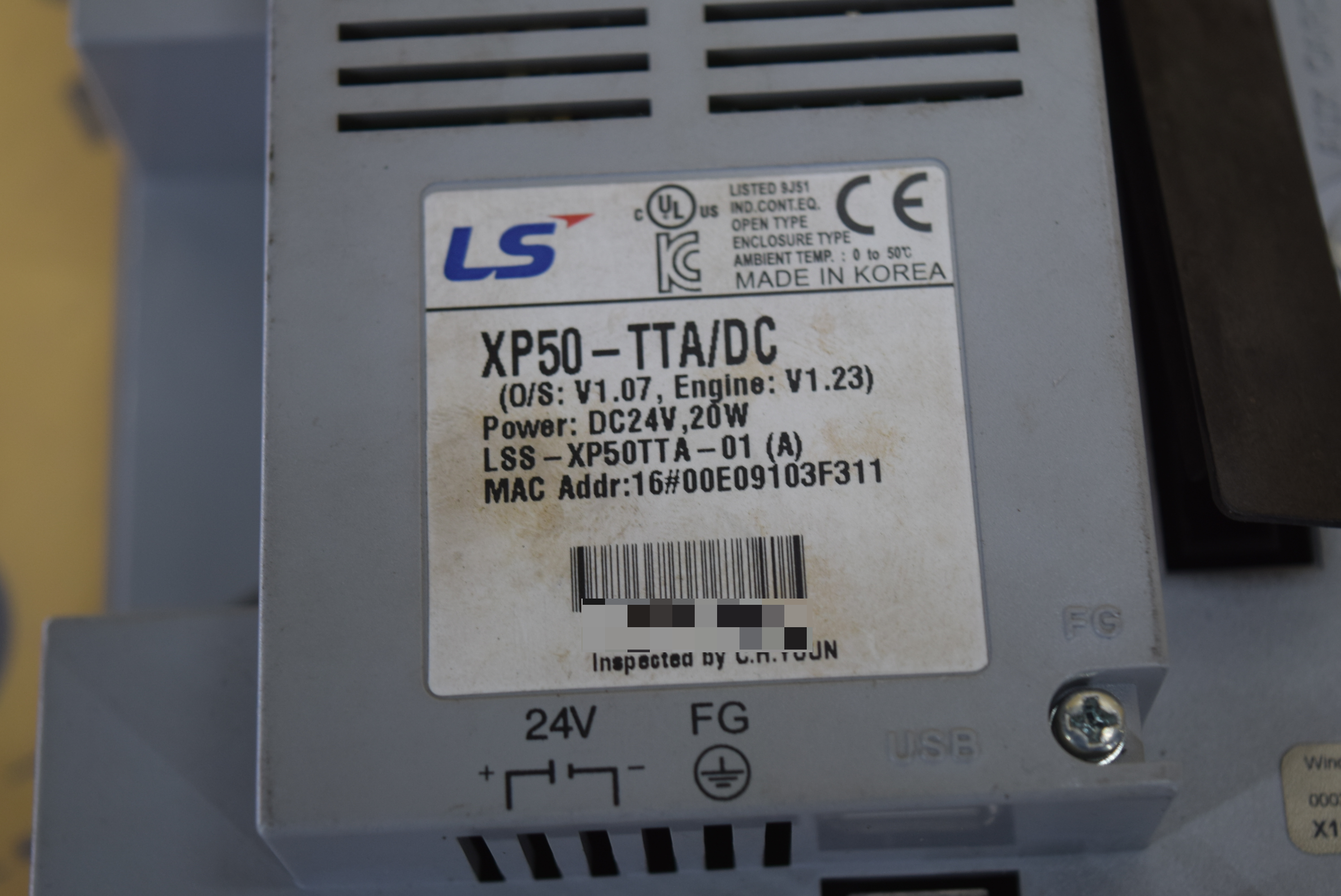 | 모델명 : XP50-TTA/DC 품목명 : TOUCH PANEL 제조사 : LS |