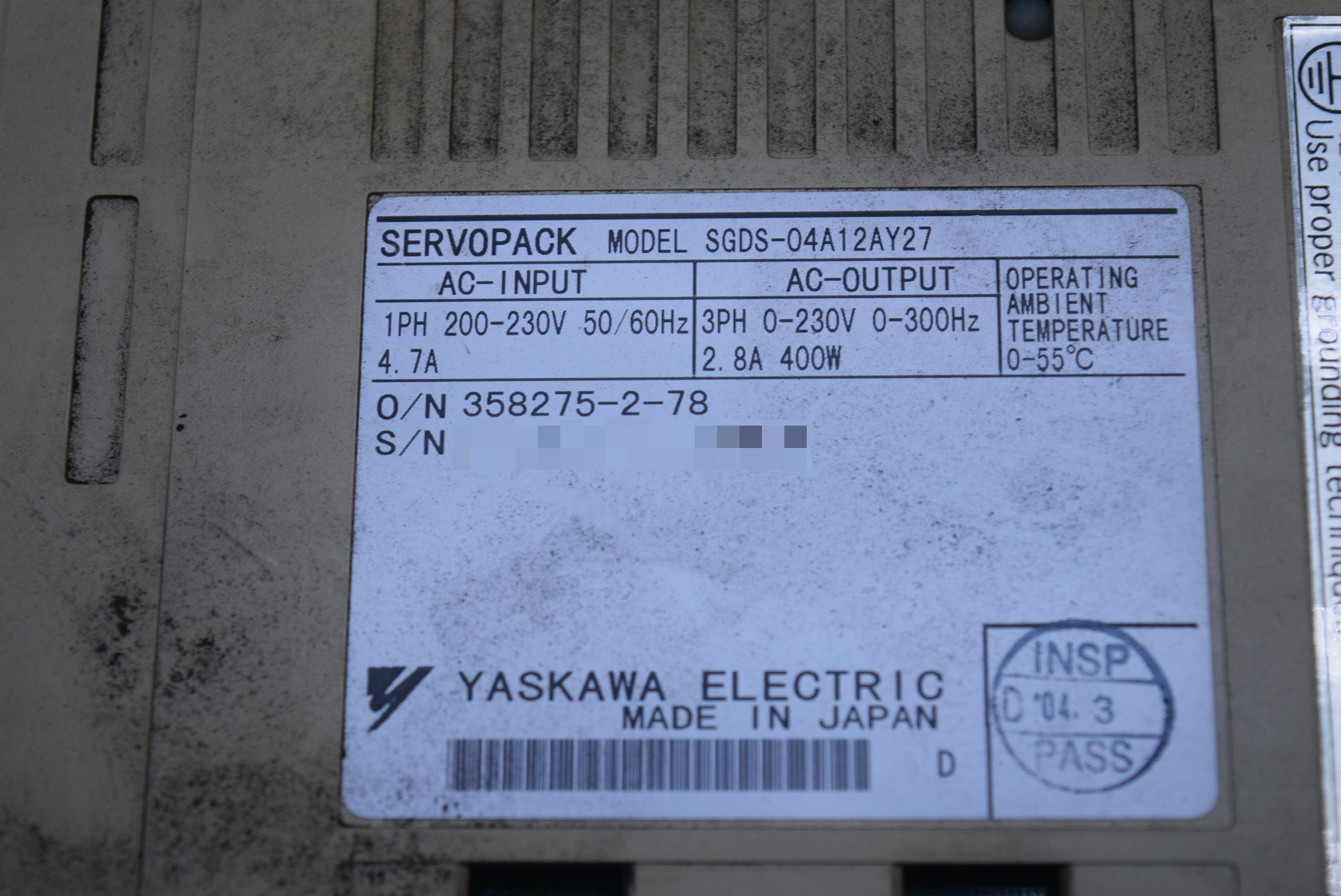 | 모델명 : SGDS-04A12AY27 품목명 : SERVO DRIVER 제조사 : YASKAWA |