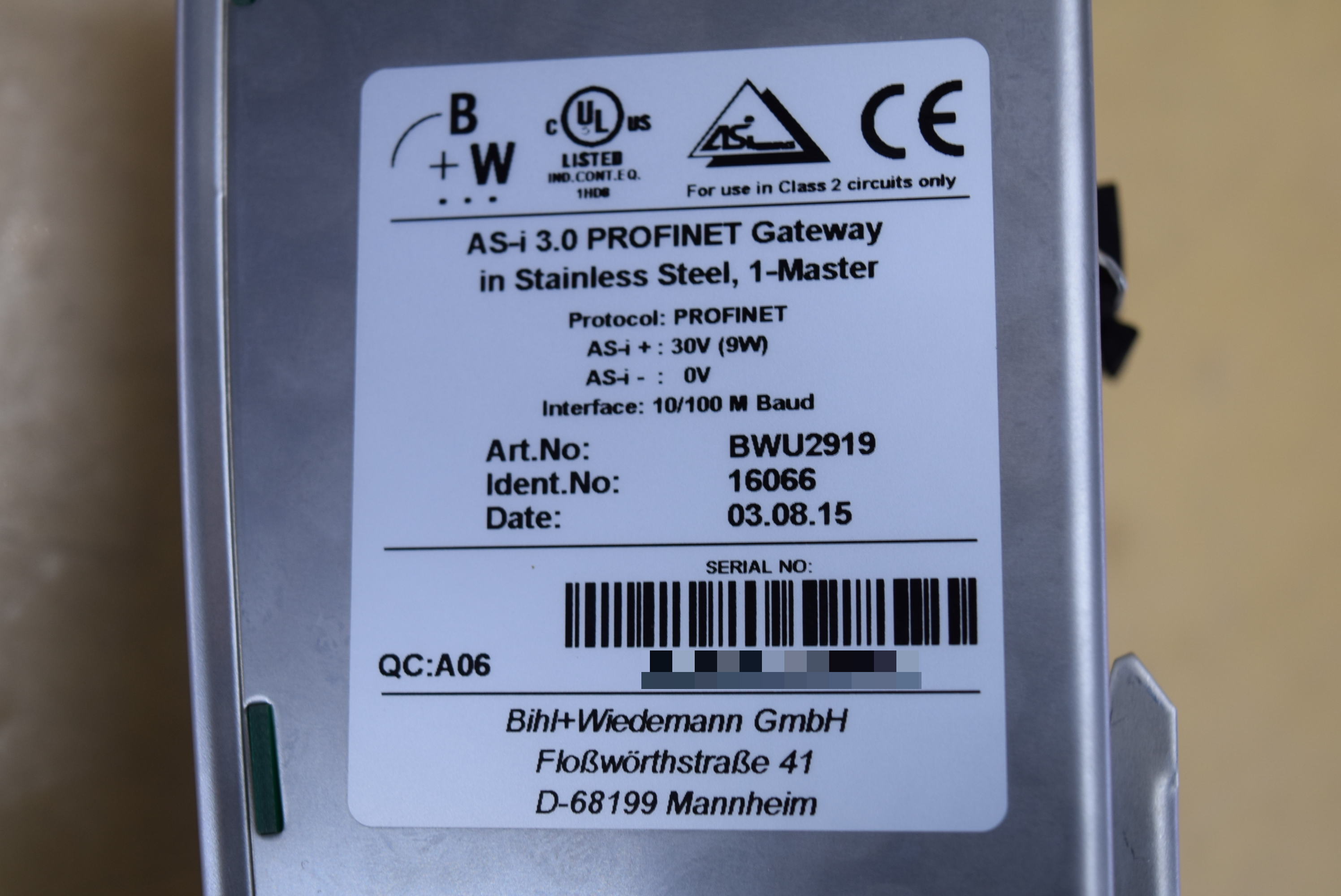 | 모델명 : BWU2919 품목명 : Gateway 제조사 : Bihl+Wiedemann 증상 : 통신 불량 |