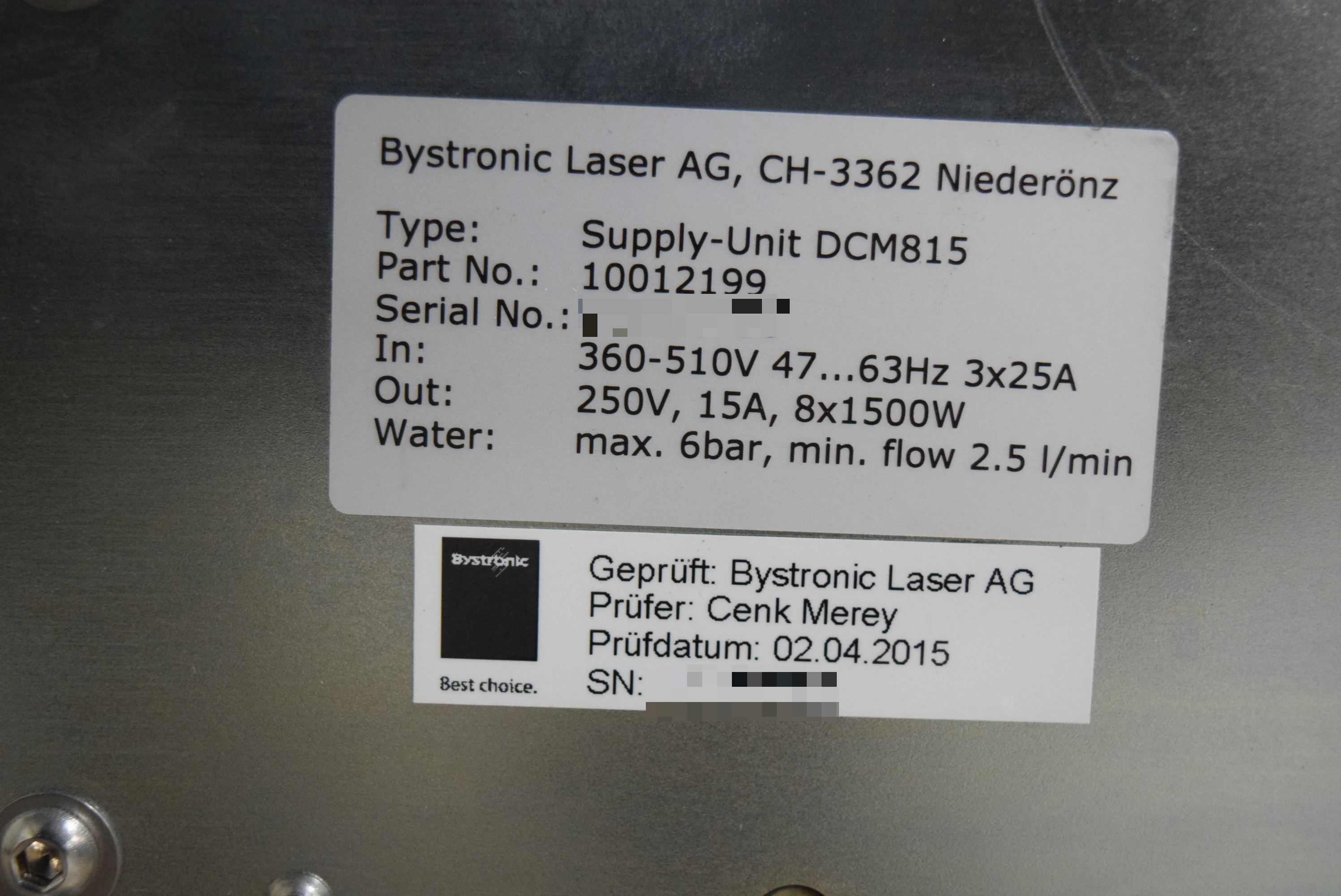 | 모델명 : Supply-UNIT DCM815 품목명 : POWER SUPPLY 제조사 : BYSTRONIC 증상 : 최소 전류에 도달하지 못함 알람 발생 |