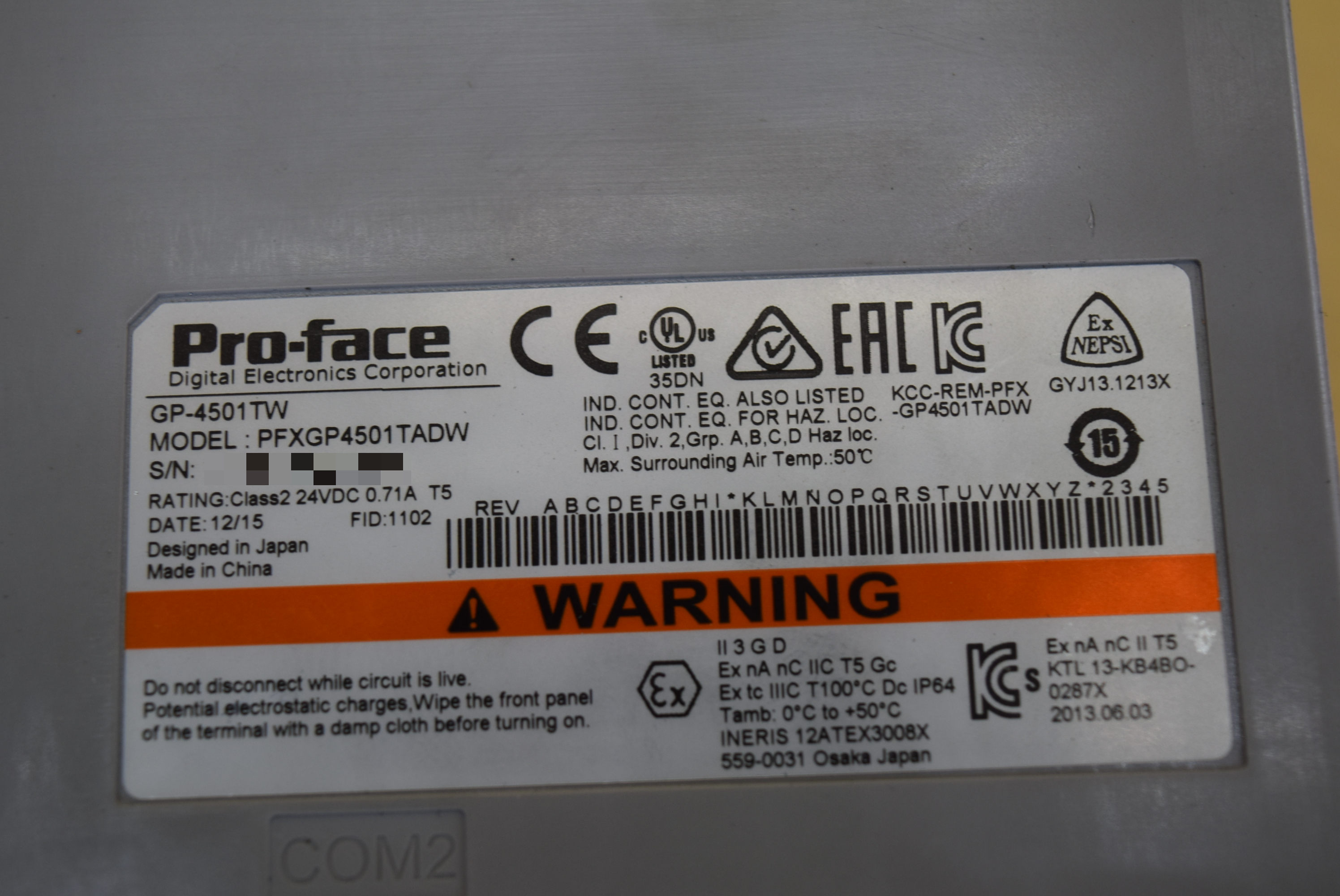 | 모델명 : PFXGP4501TADW 품목명 : TOUCH PANEL 제조사 : PRO-FACE 증상 : 통신 불량 |