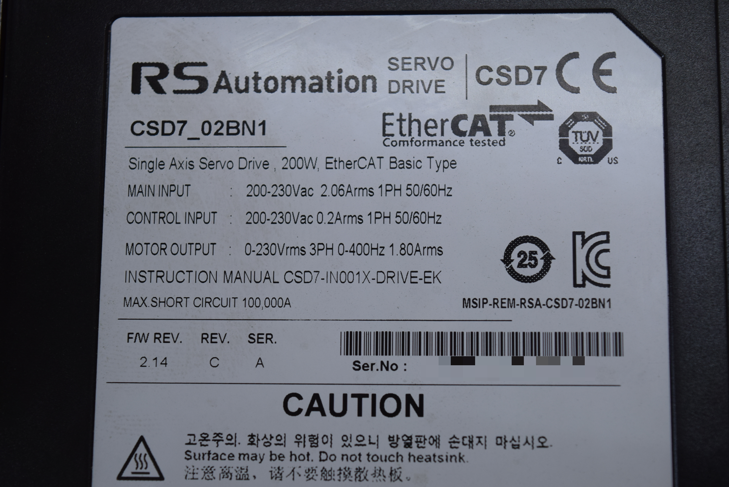 | 모델명 : CSD7_02BN1 품목명 : SERVO DRIVER 제조사 : RS AUTOMATION |