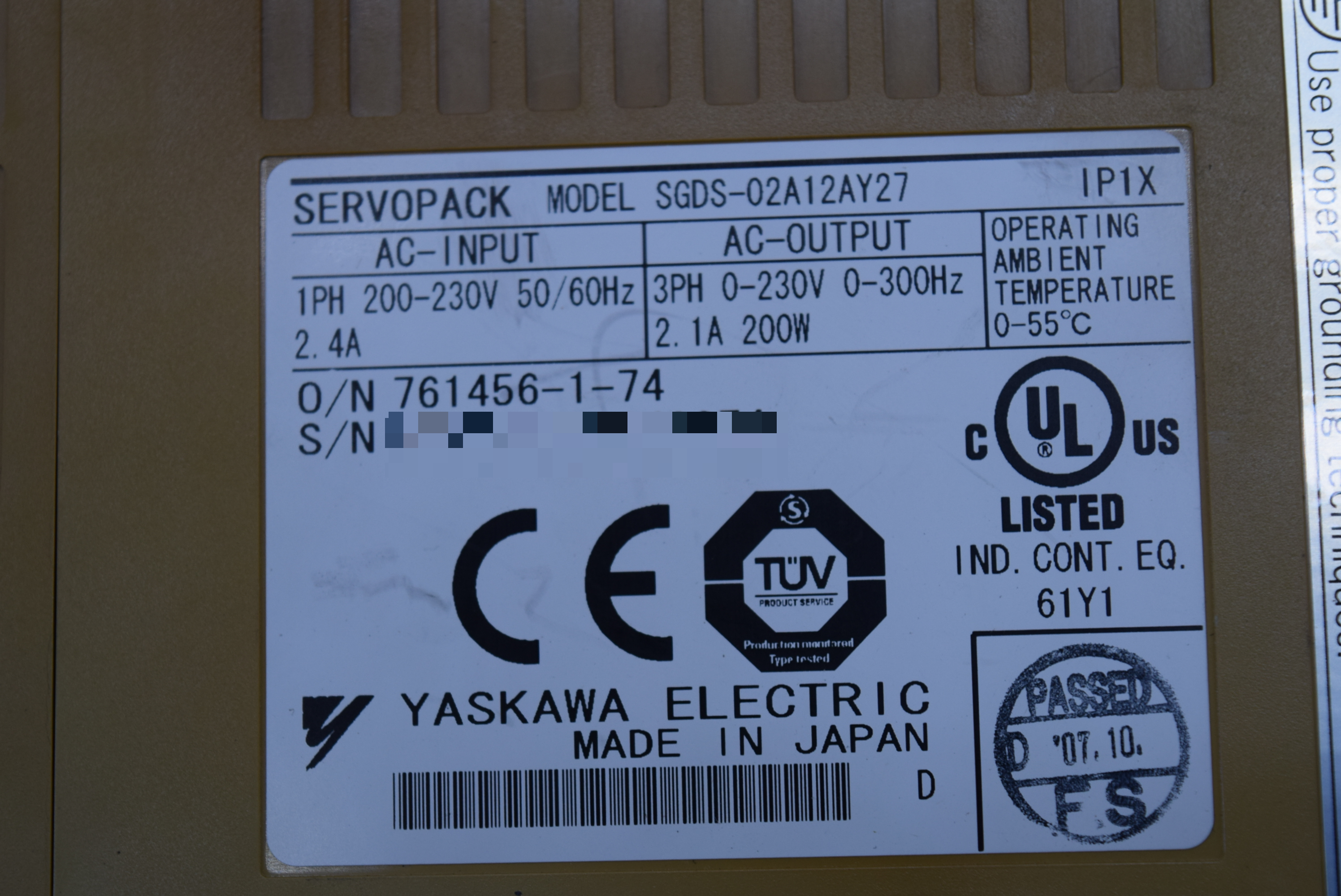 | 모델명 : SGDS-02A12AY27 품목명 : SERVO DRIVER 제조사 : YASKAWA |