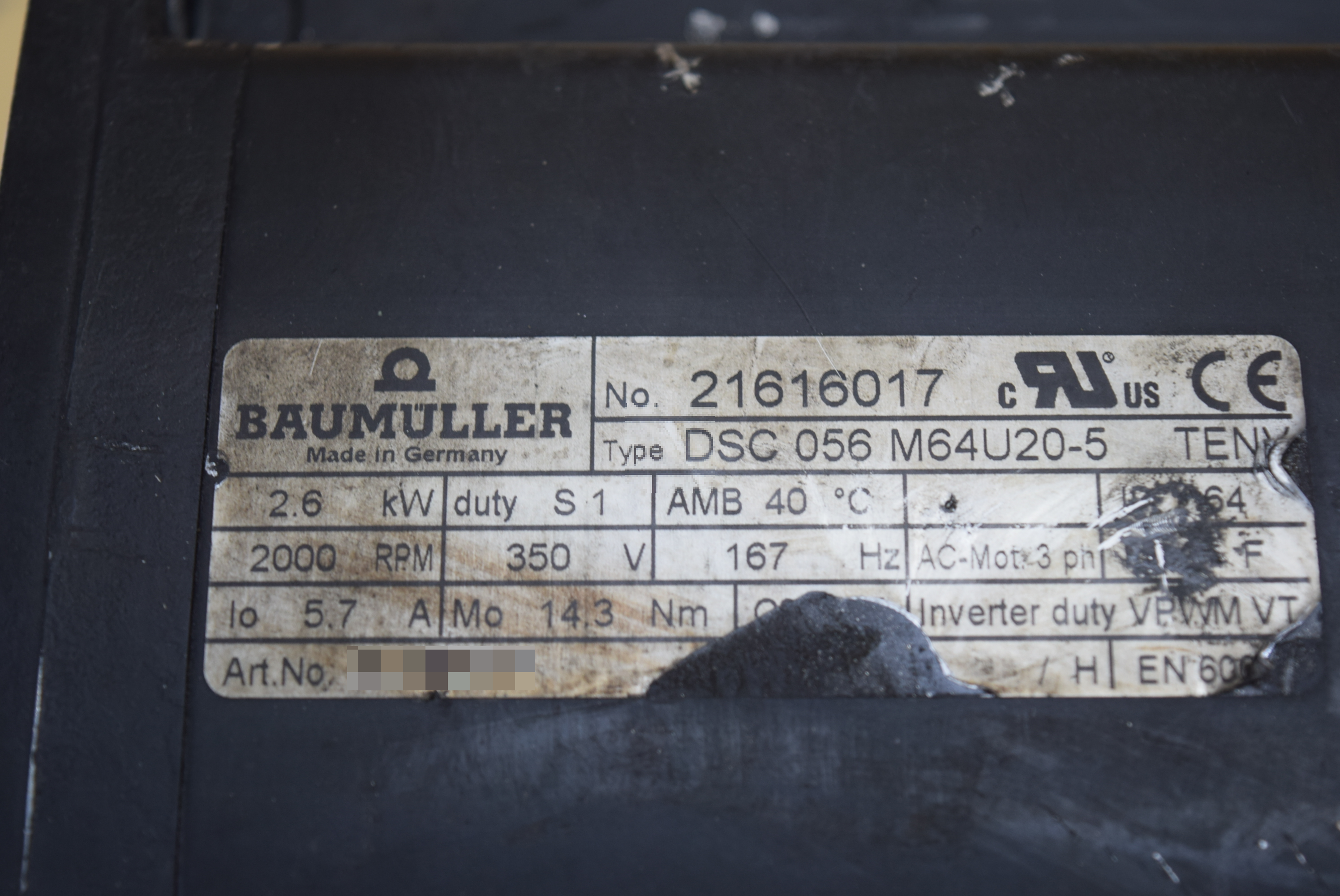 | 모델명 : DSC 056 M64U20-5 품목명 : SERVO MOTOR 제조사 : BAUMULLER 증상 : 구동 불량 |